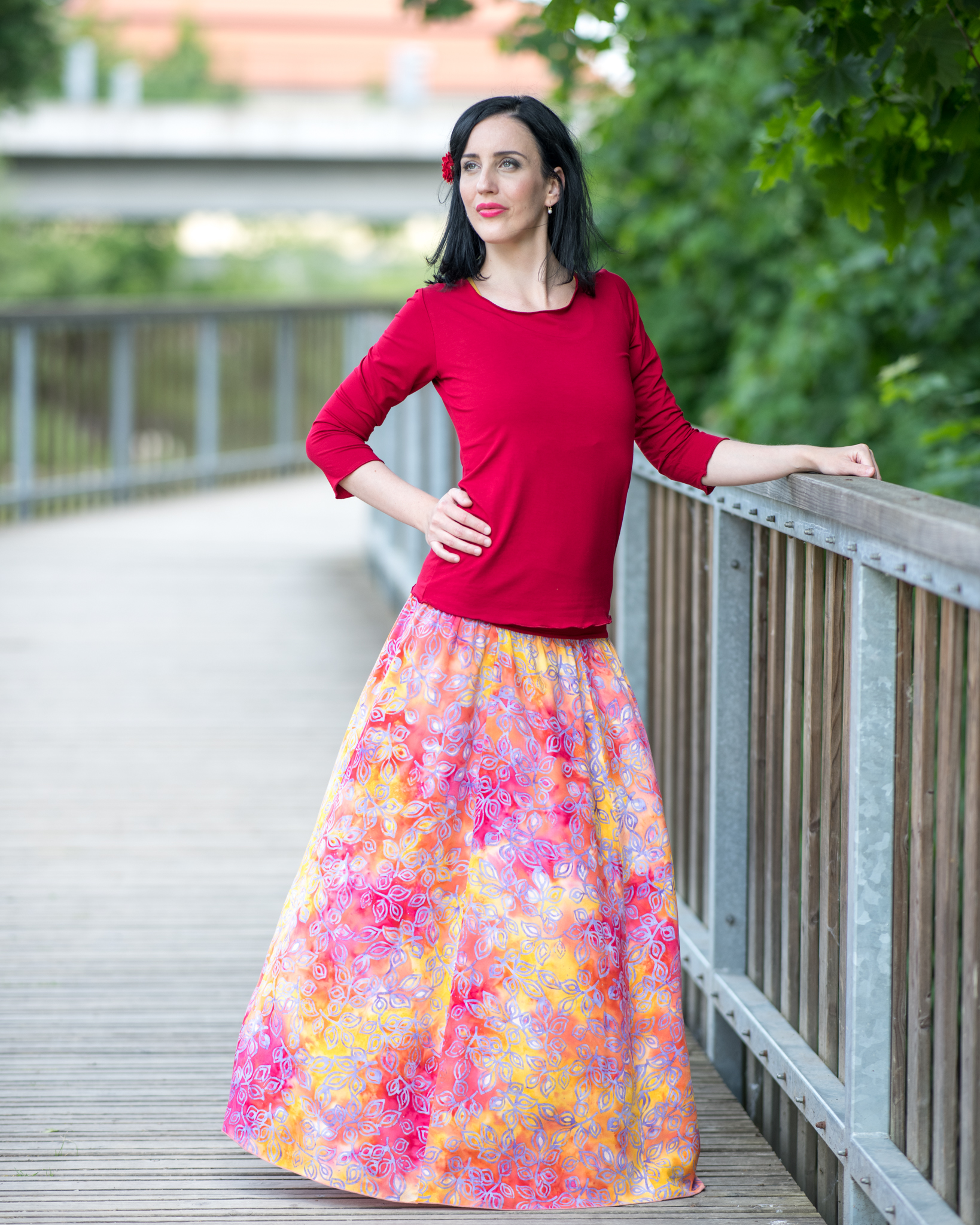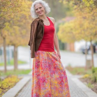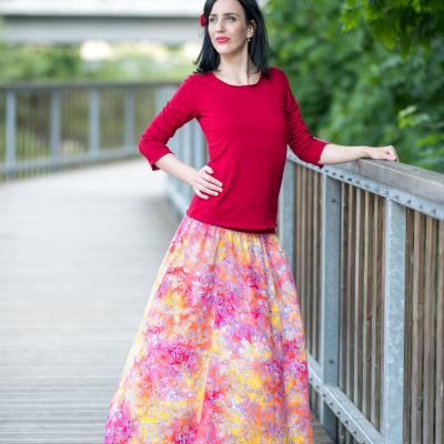 Připravte se na to, že touto úchvatnou, dlouhou sukní přitáhnete pozornost! Sukně je ušitá z lehké viskózové látky a pyšní se nádherným batikovým vzorem.