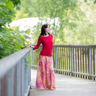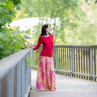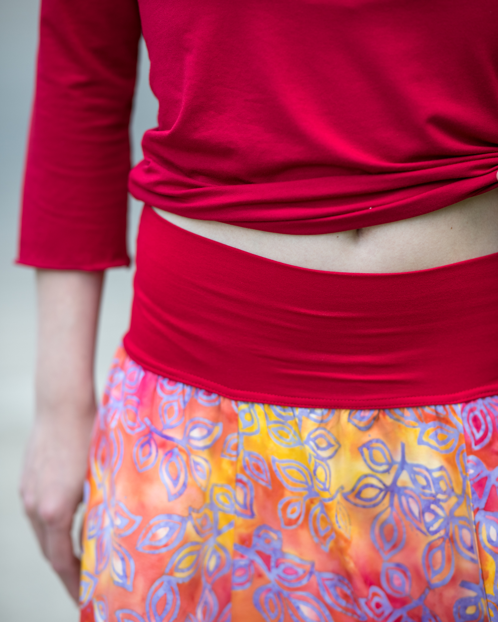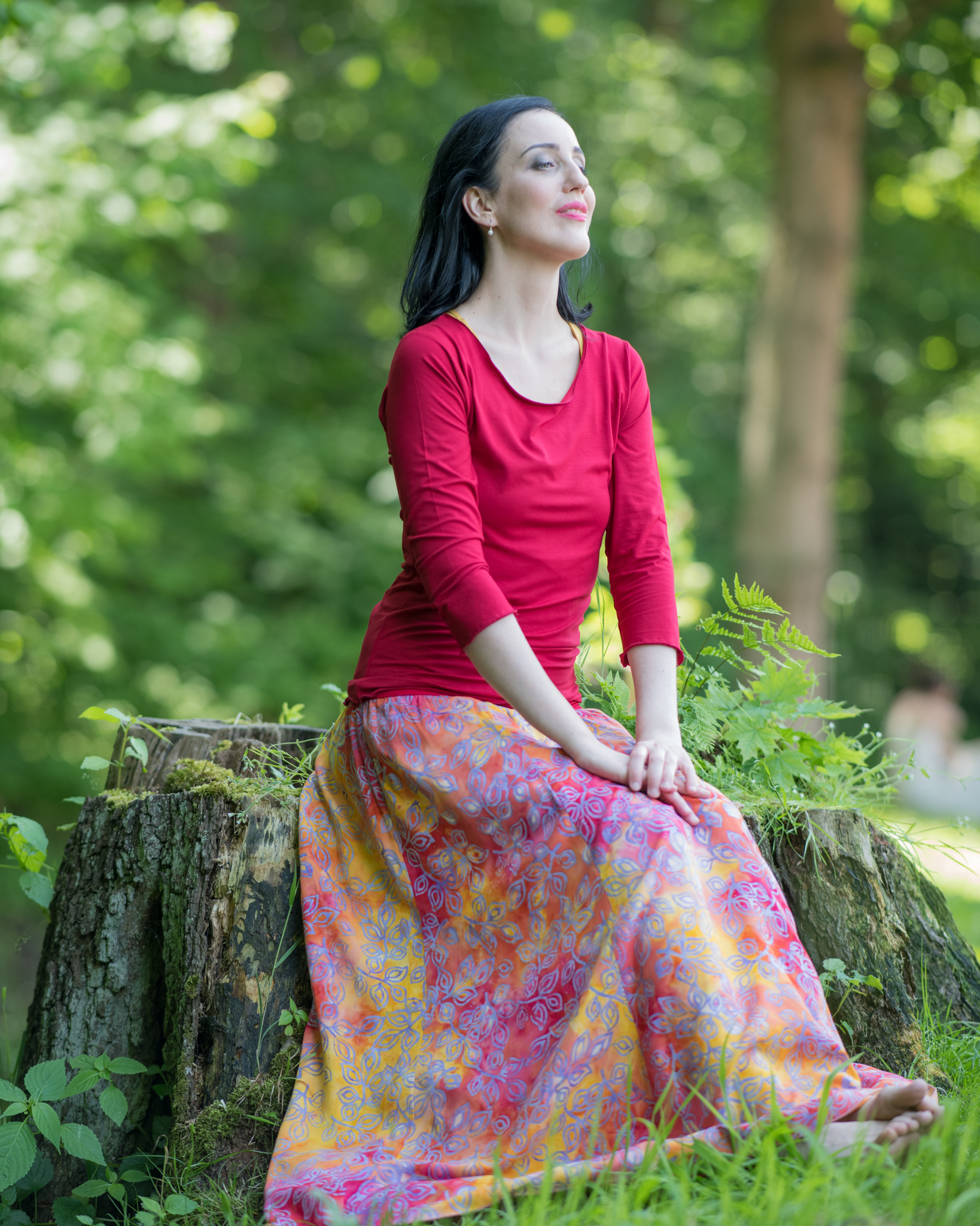 Vysoký elastický pas je nesmírně pohodlný na nošení. Sukně je vhodná i pro těhotné, pružný náplet v pase se krásně přizpůsobí bříšku a obejme ho po celém jeho obvodu. Ikonická Pacha sukně s délkou až na zem se krásně vlní při chůzi a vytváří ženskou siluetu.