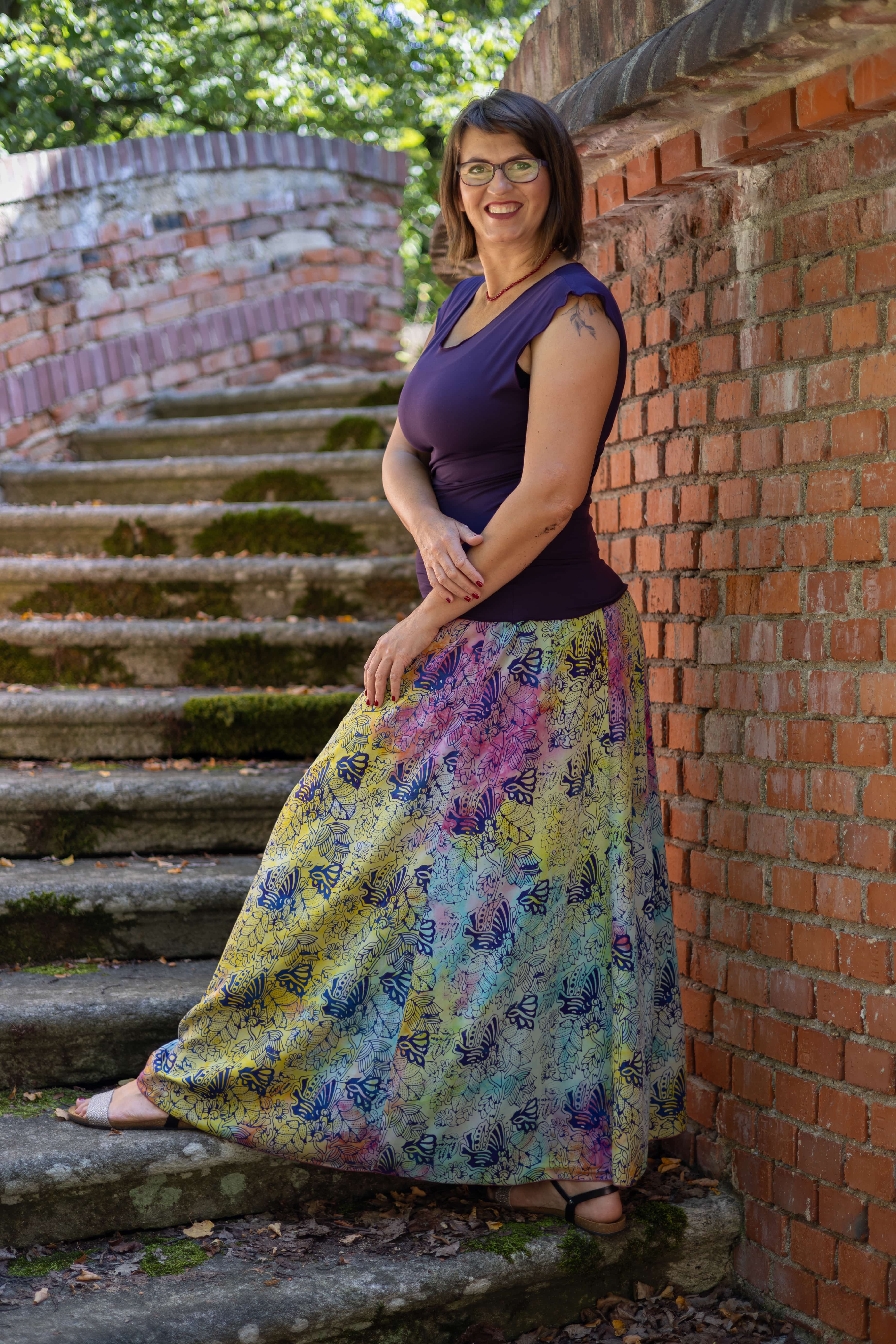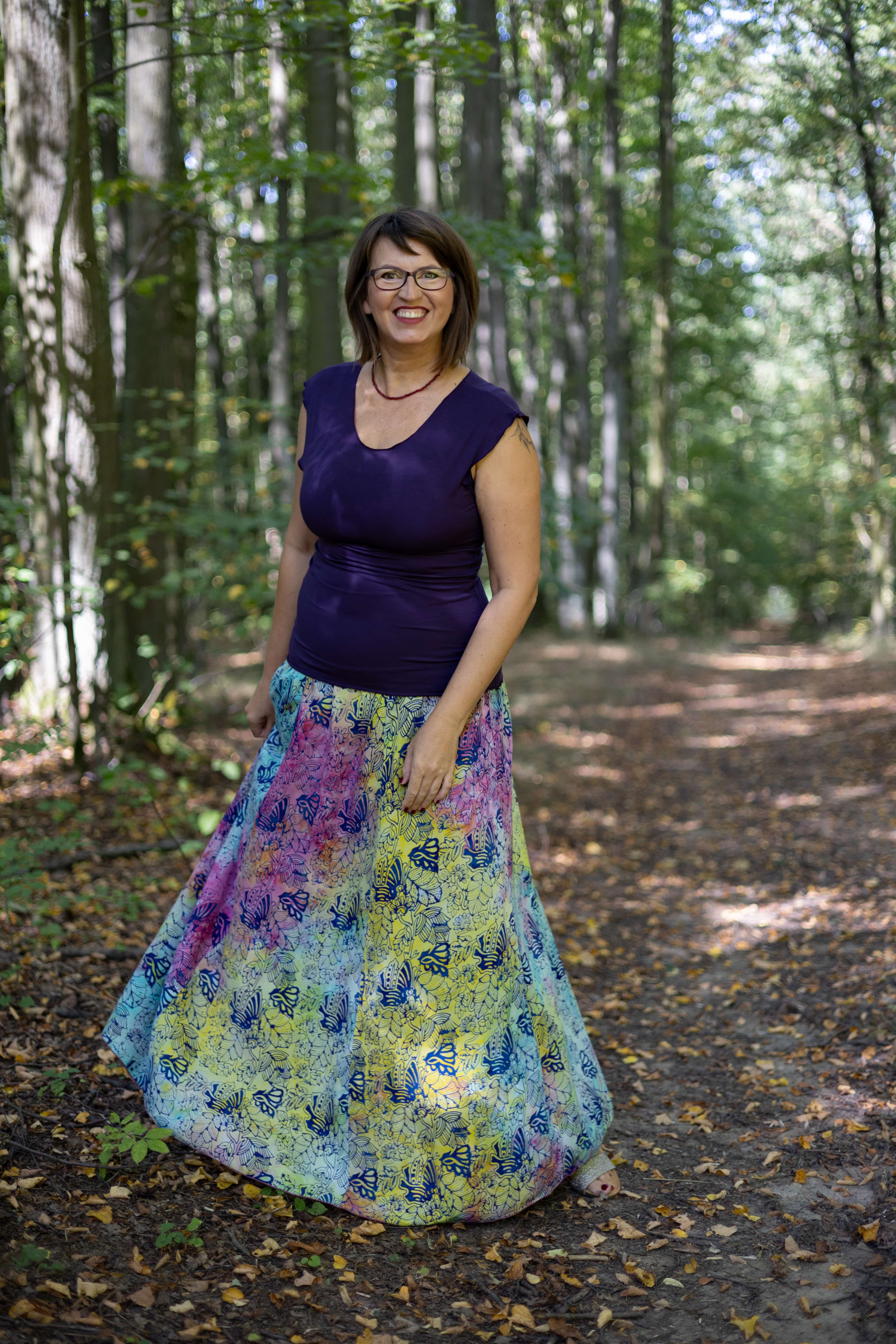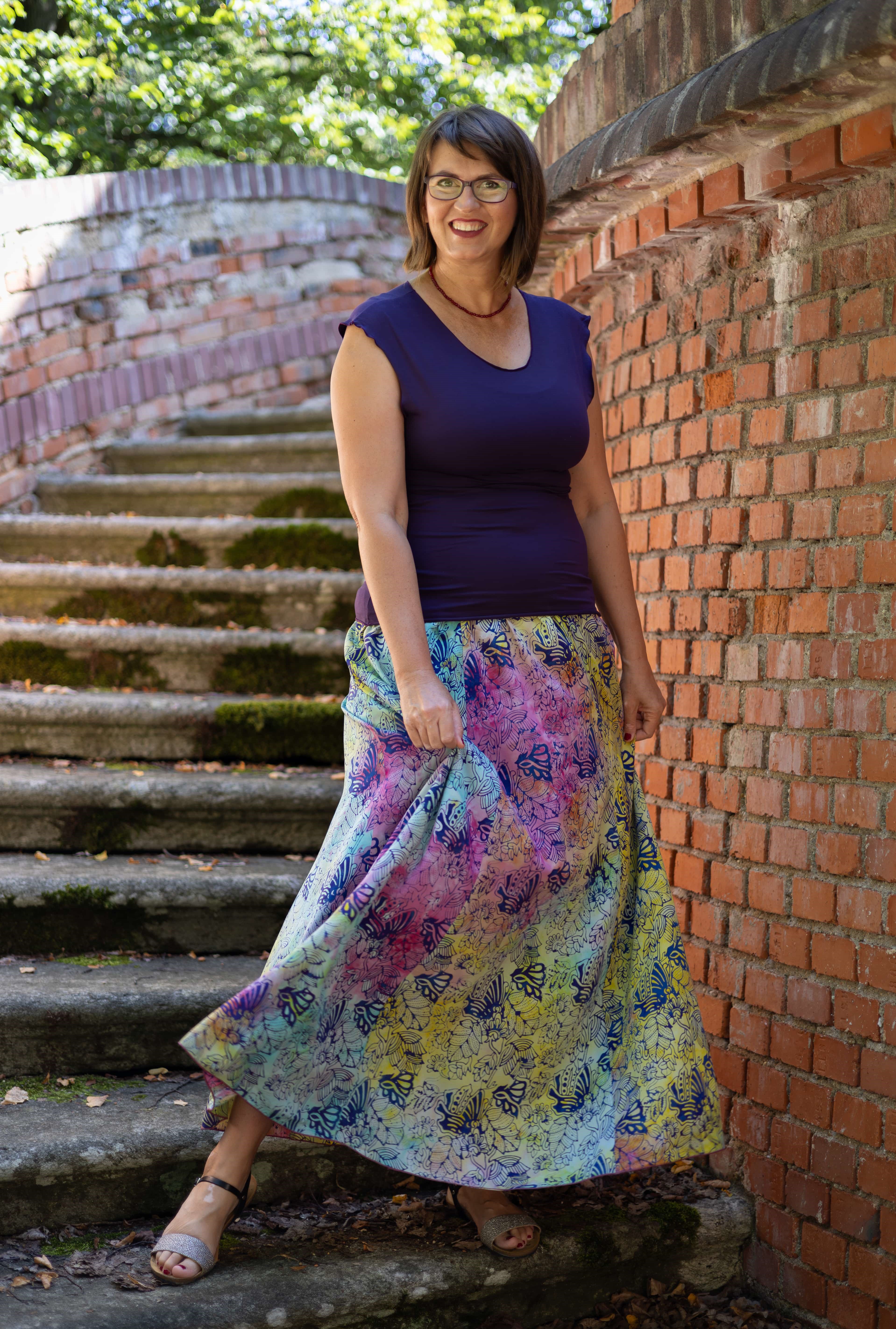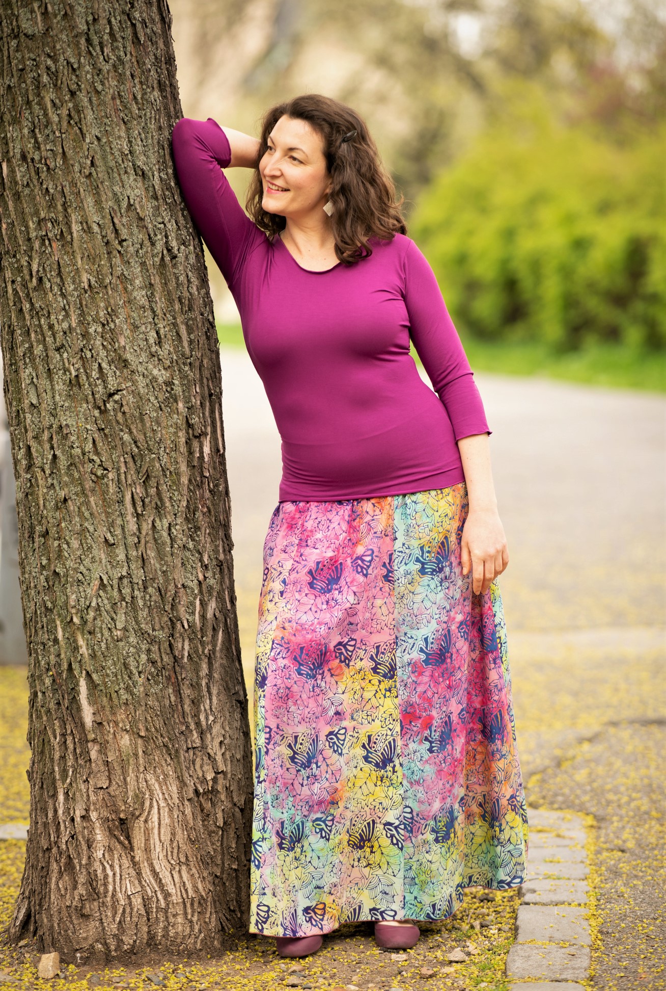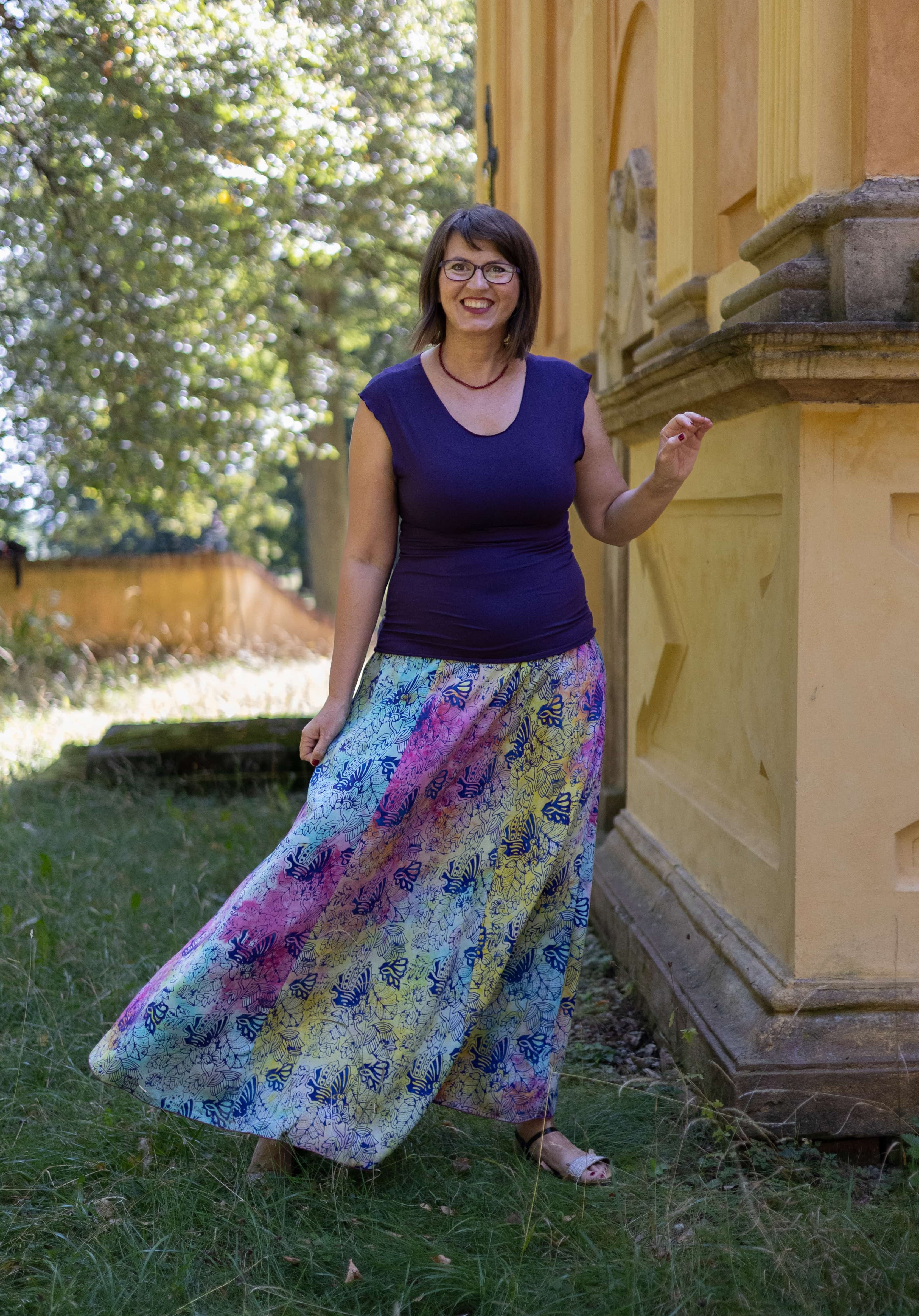 Připravte se na to, že touto úchvatnou, dlouhou sukní přitáhnete pozornost! Sukně je ušitá z lehké viskózové látky a pyšní se nádherným batikovým vzorem.