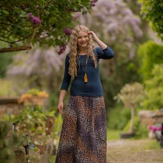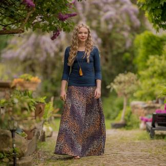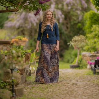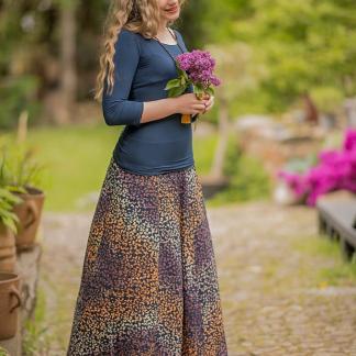 Vysoký elastický pas je nesmírně pohodlný na nošení. Sukně je vhodná i pro těhotné, pružný náplet v pase se krásně přizpůsobí bříšku a obejme ho po celém jeho obvodu. Ikonická Pacha sukně s délkou až na zem se krásně vlní při chůzi a vytváří ženskou siluetu.