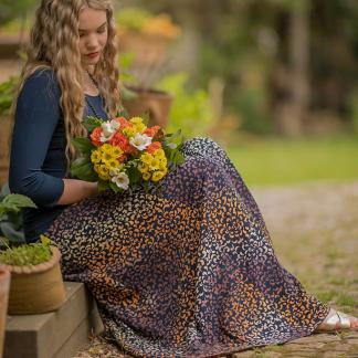 Připravte se na to, že touto úchvatnou, dlouhou sukní přitáhnete pozornost! Sukně je ušitá z lehké viskózové látky a pyšní se nádherným batikovým vzorem.