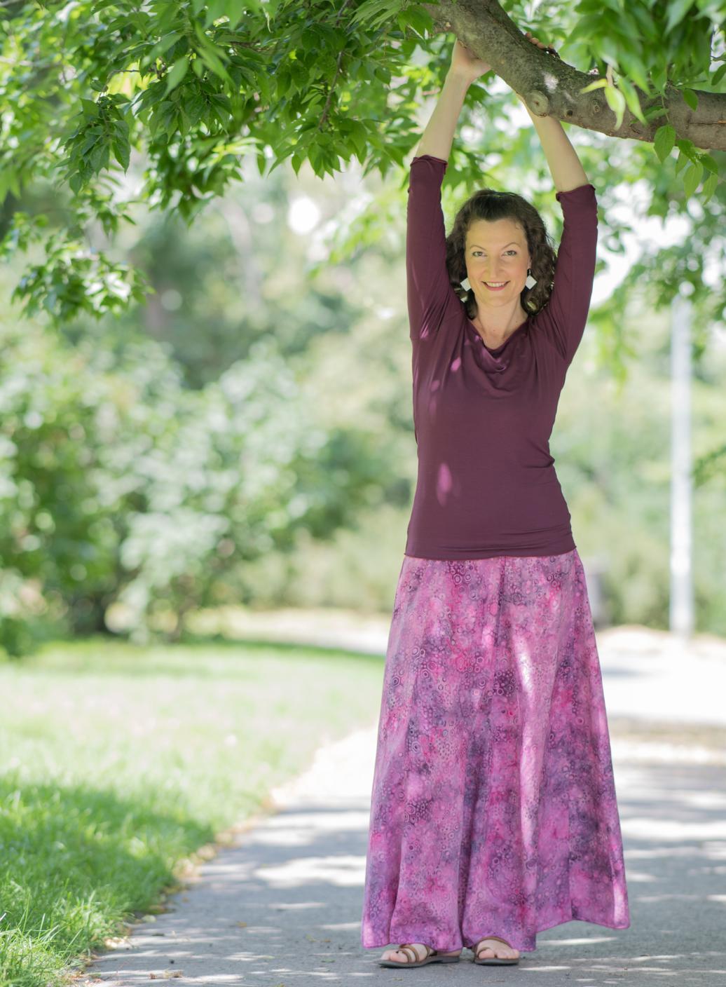 Vysoký elastický pas je nesmírně pohodlný na nošení. Sukně je vhodná i pro těhotné, pružný náplet v pase se krásně přizpůsobí bříšku a obejme ho po celém jeho obvodu. Ikonická Pacha sukně s délkou až na zem se krásně vlní při chůzi a  vytváří ženskou siluetu.