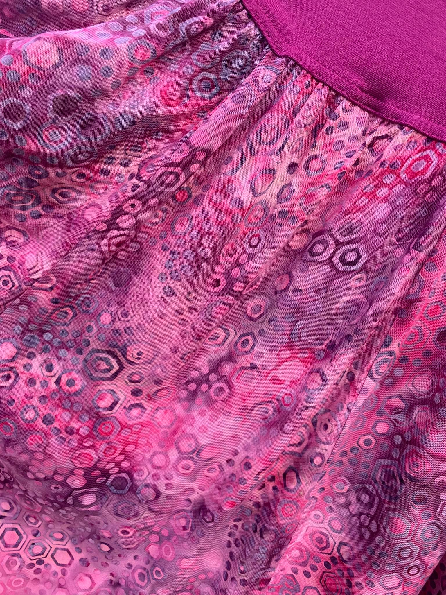 Připravte se na to, že touto úchvatnou, dlouhou sukní přitáhnete pozornost! Sukně je ušitá z lehké viskózové látky a pyšní se nádherným batikovým vzorem.