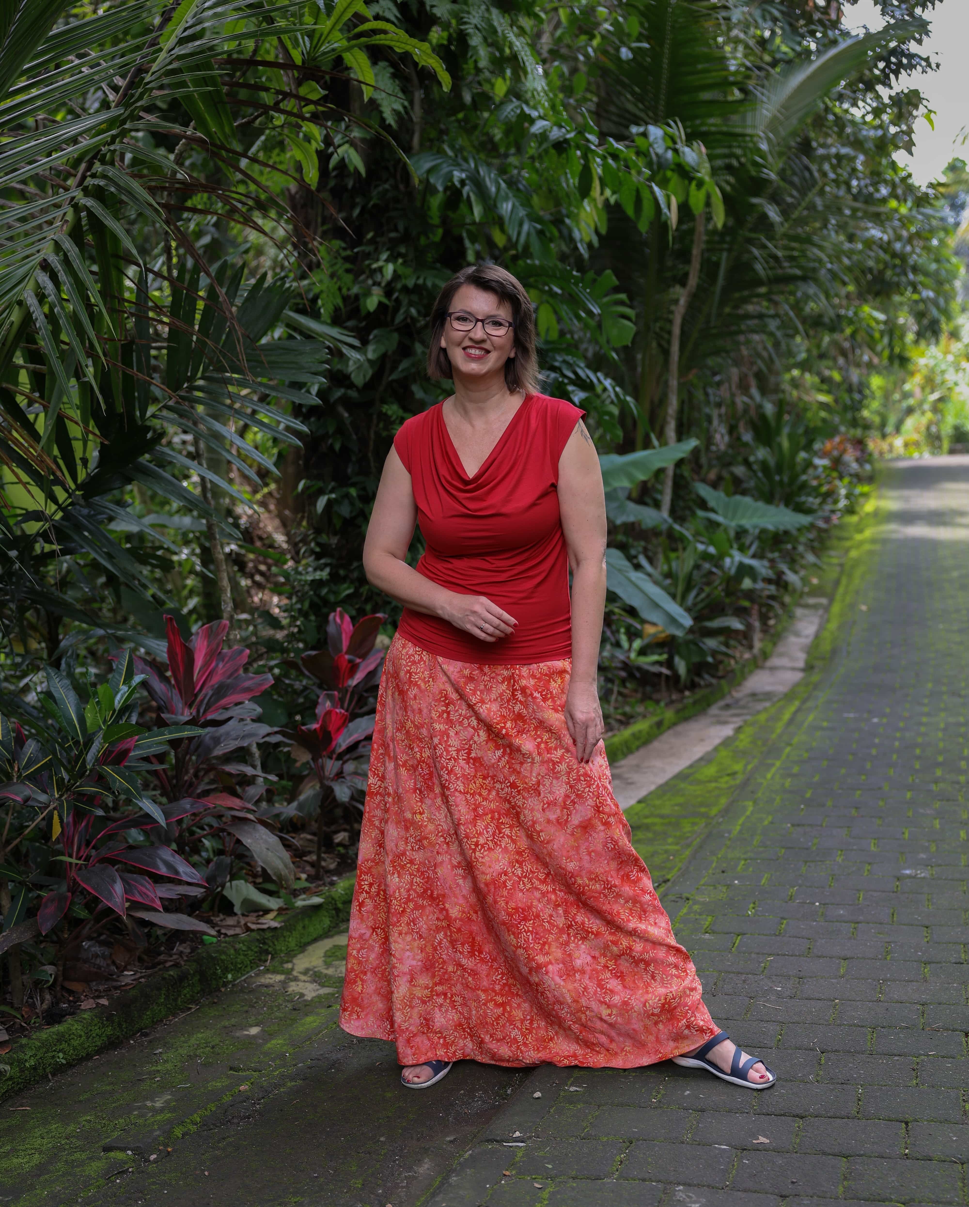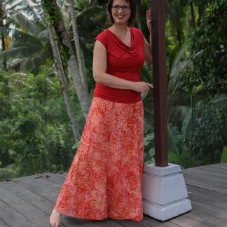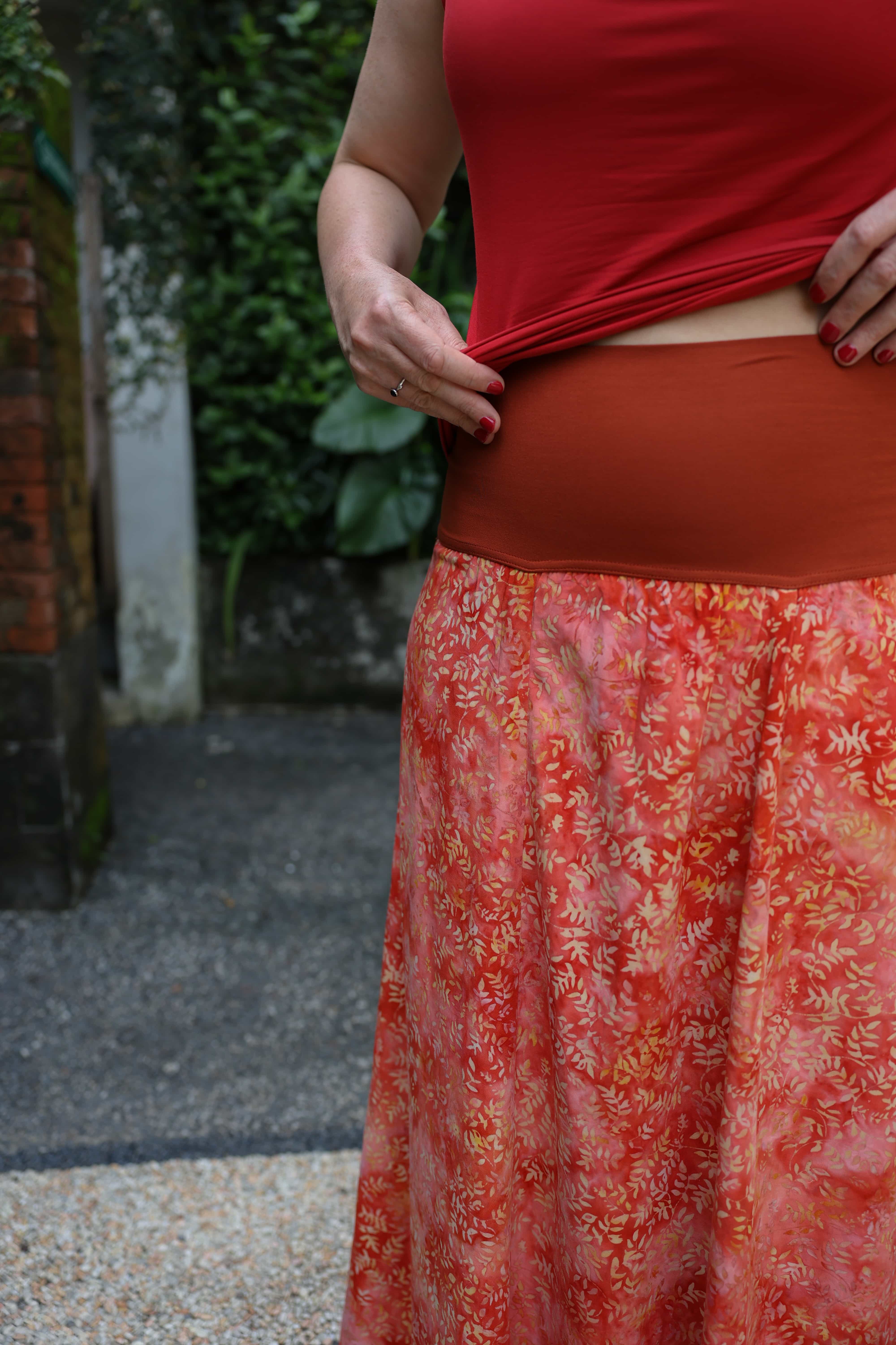 Vysoký elastický pas je nesmírně pohodlný na nošení. Sukně je vhodná i pro těhotné, pružný náplet v pase se krásně přizpůsobí bříšku a obejme ho po celém jeho obvodu. Ikonická Pacha sukně s délkou až na zem se krásně vlní při chůzi, vytvářejíc ženskou siluetu, která je pohodlná a stylová zároveň.