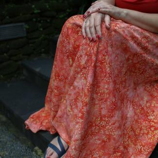 Připravte se na to, že touto úchvatnou, dlouhou sukní přitáhnete pozornost! Sukně je ušitá z lehké viskózové látky a pyšní se nádherným batikovým vzorem.