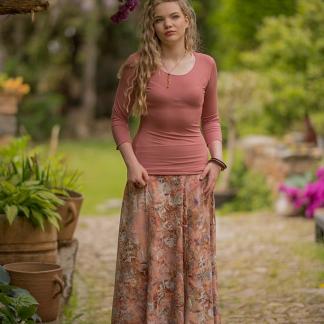 Vysoký elastický pas je nesmírně pohodlný na nošení. Sukně je vhodná i pro těhotné, pružný náplet v pase se krásně přizpůsobí bříšku a obejme ho po celém jeho obvodu. Ikonická Pacha sukně s délkou až na zem se krásně vlní při chůzi a  vytváří ženskou siluetu.