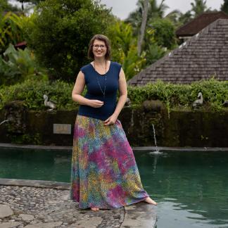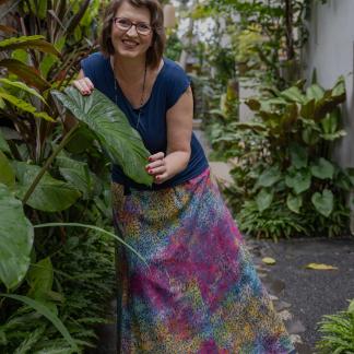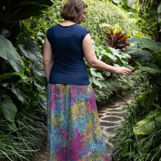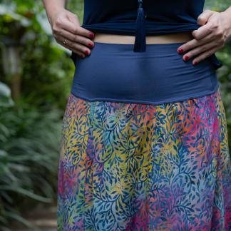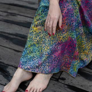 Připravte se na to, že touto úchvatnou, dlouhou sukní přitáhnete pozornost! Sukně je ušitá z lehké viskózové látky a pyšní se nádherným batikovým vzorem.