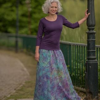 Připravte se na to, že touto úchvatnou, dlouhou sukní přitáhnete pozornost! Sukně je ušitá z lehké viskózové látky a pyšní se nádherným batikovým vzorem.