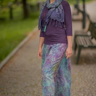 Vysoký elastický pas je nesmírně pohodlný na nošení. Sukně je vhodná i pro těhotné, pružný náplet v pase se krásně přizpůsobí bříšku a obejme ho po celém jeho obvodu. Ikonická Pacha sukně s délkou až na zem se krásně vlní při chůzi, vytvářejíc ženskou siluetu, která je pohodlná a stylová zároveň.