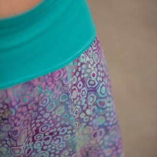 Materiál: 100 % viskóza, vosková batika. Lem: 90 % viskóza + 10% spandex.