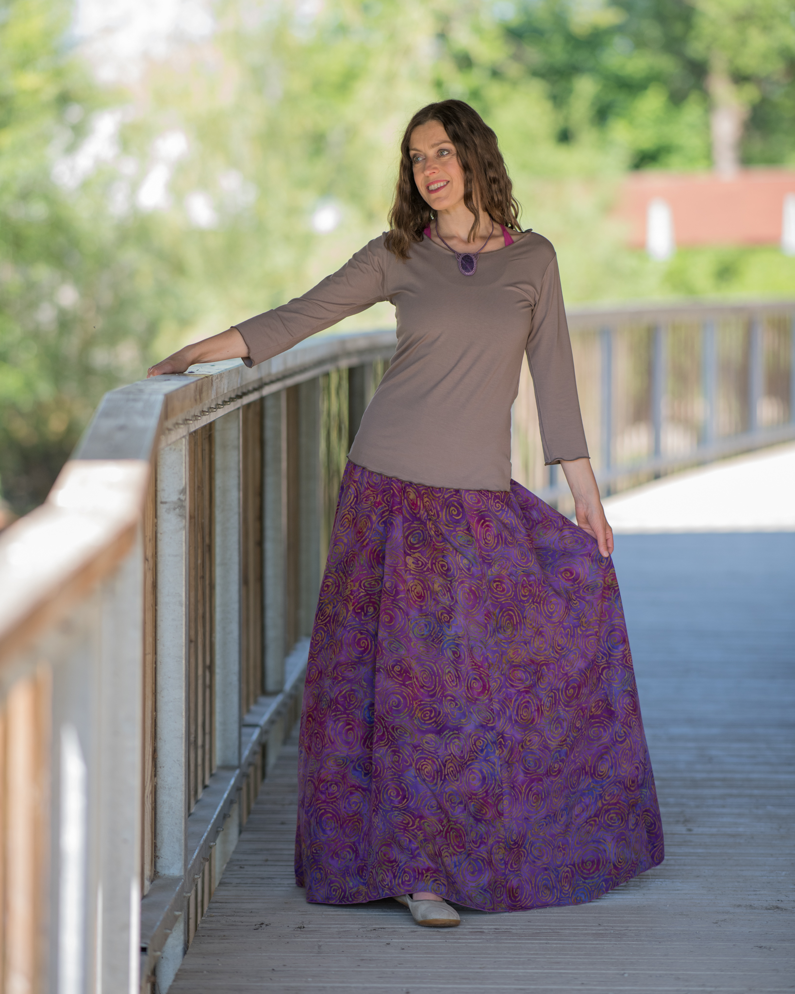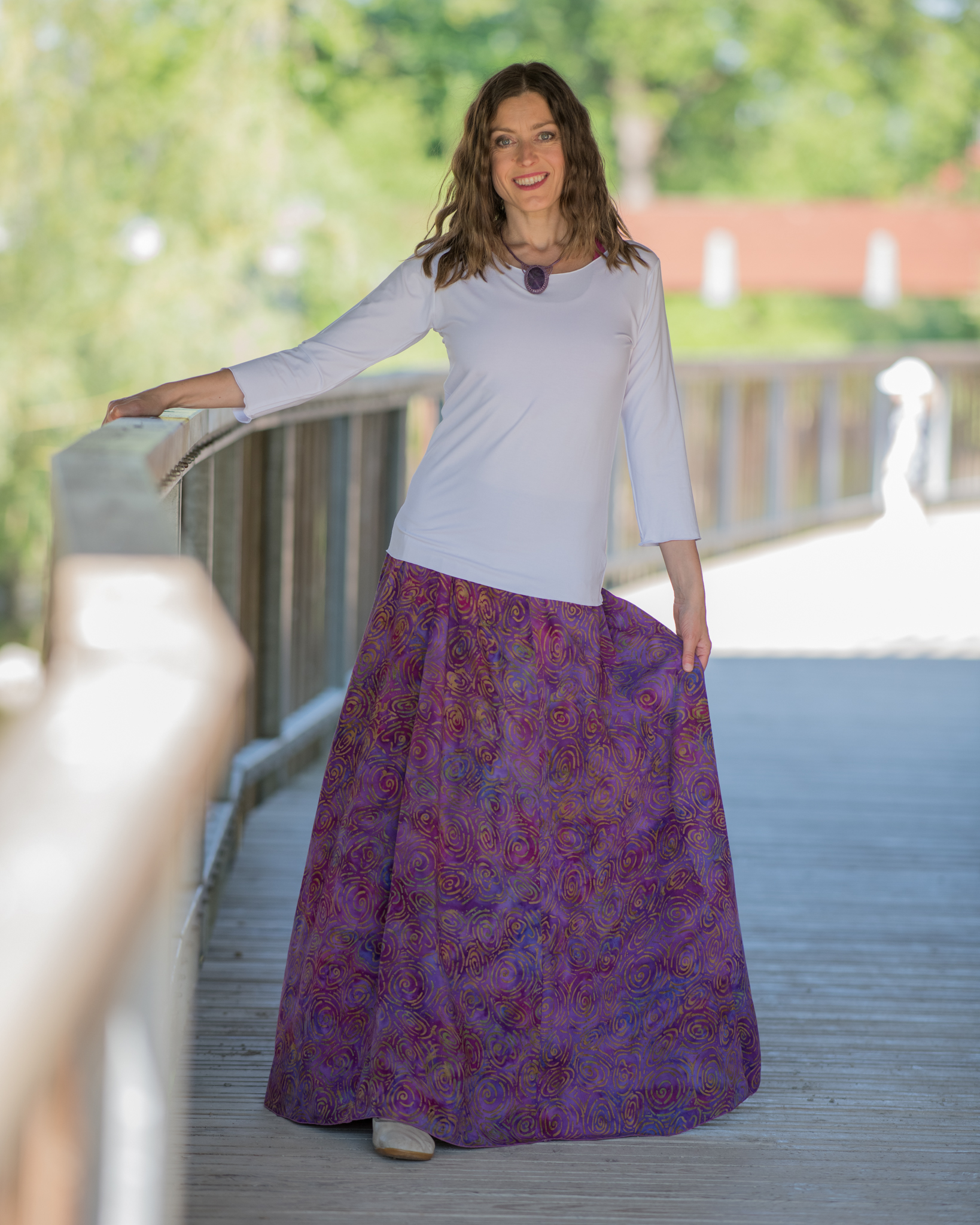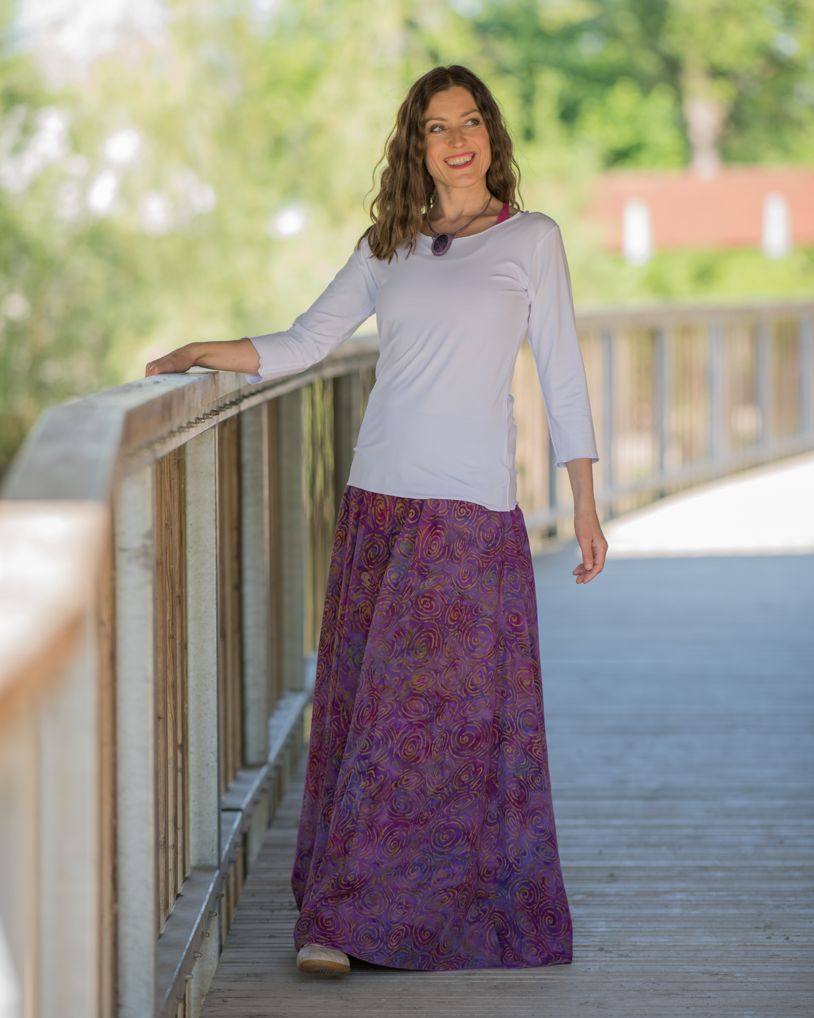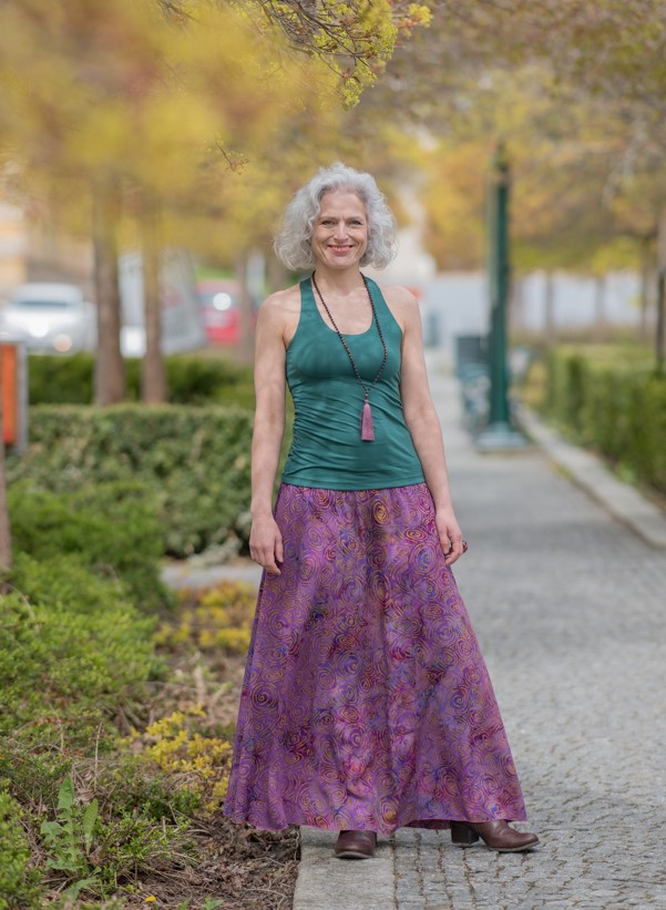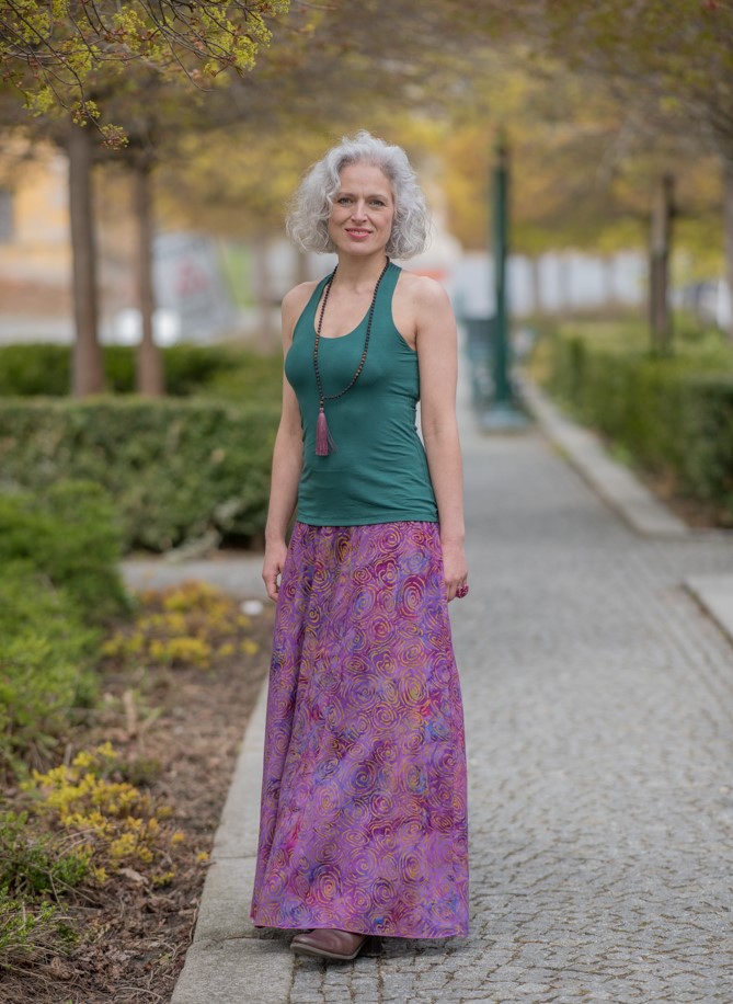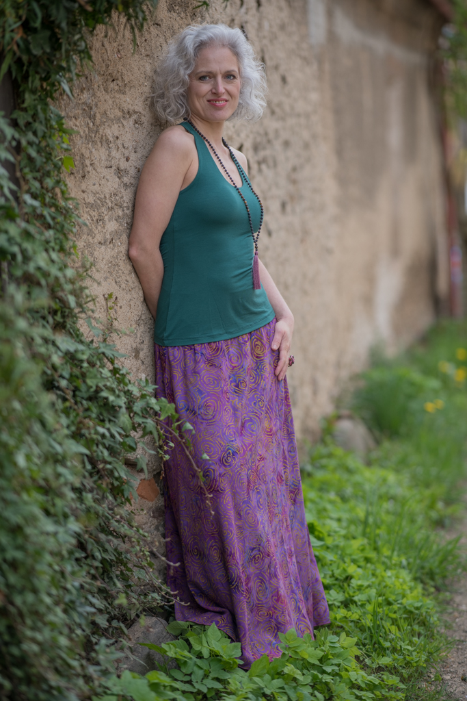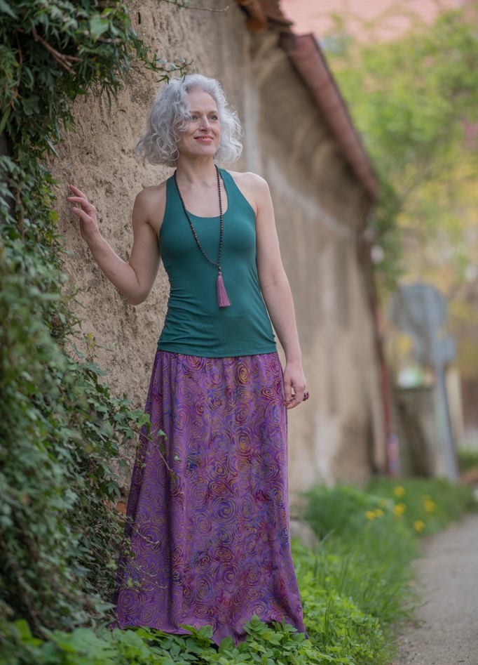 Vysoký elastický pas je nesmírně pohodlný na nošení. Sukně je vhodná i pro těhotné, pružný náplet v pase se krásně přizpůsobí bříšku a obejme ho po celém jeho obvodu. Ikonická Pacha sukně s délkou až na zem se krásně vlní při chůzi a vytváří ženskou siluetu.