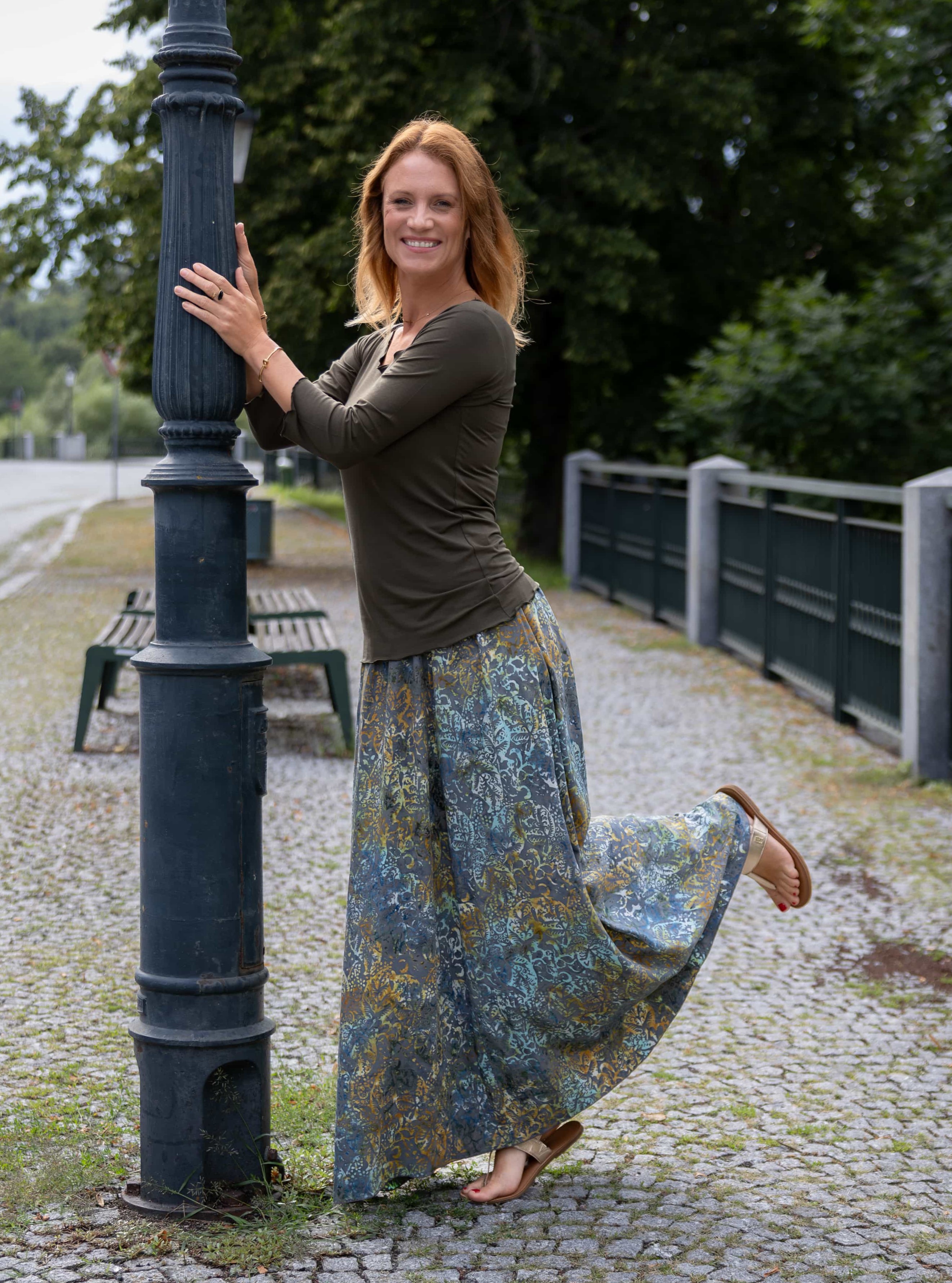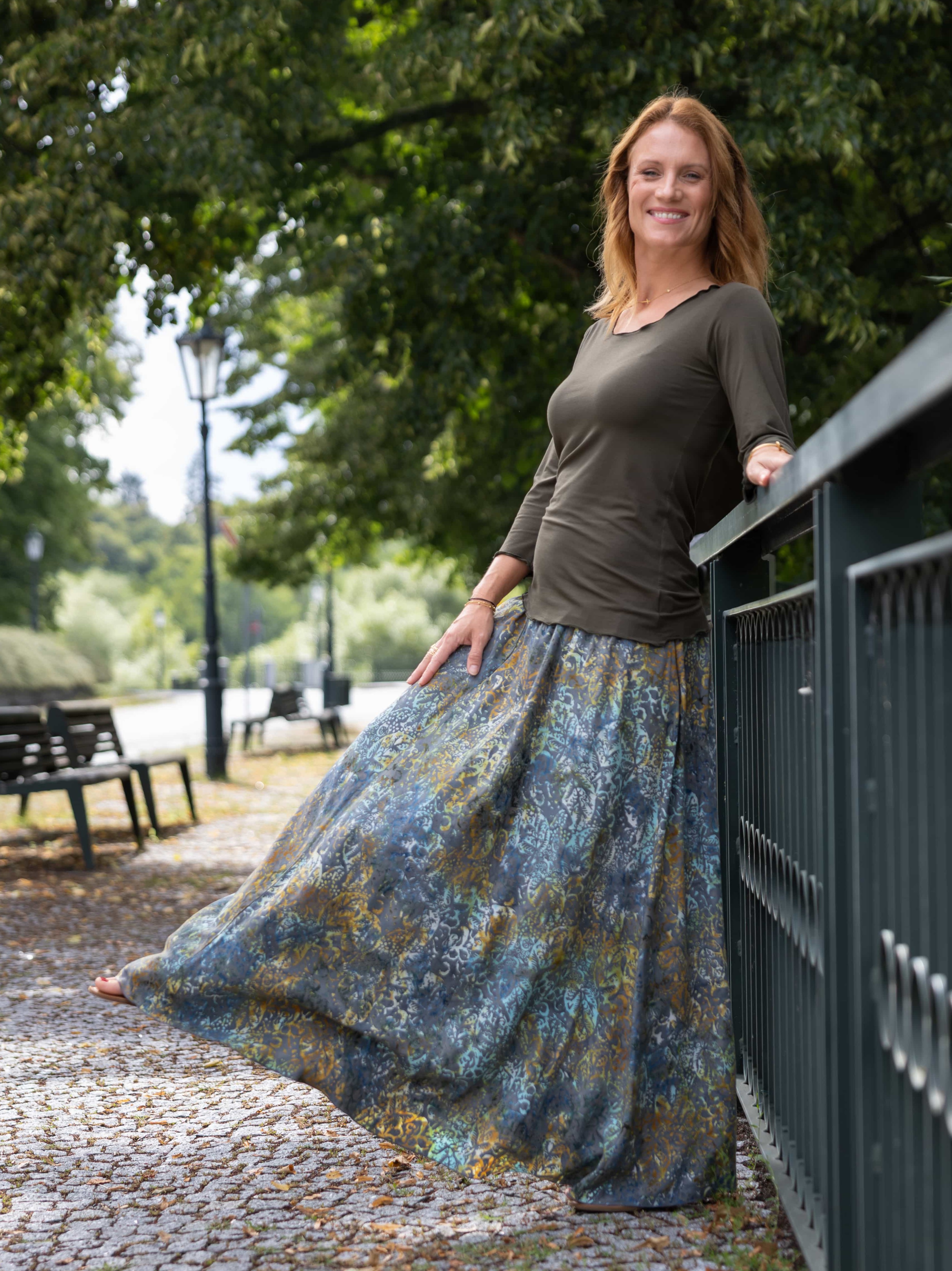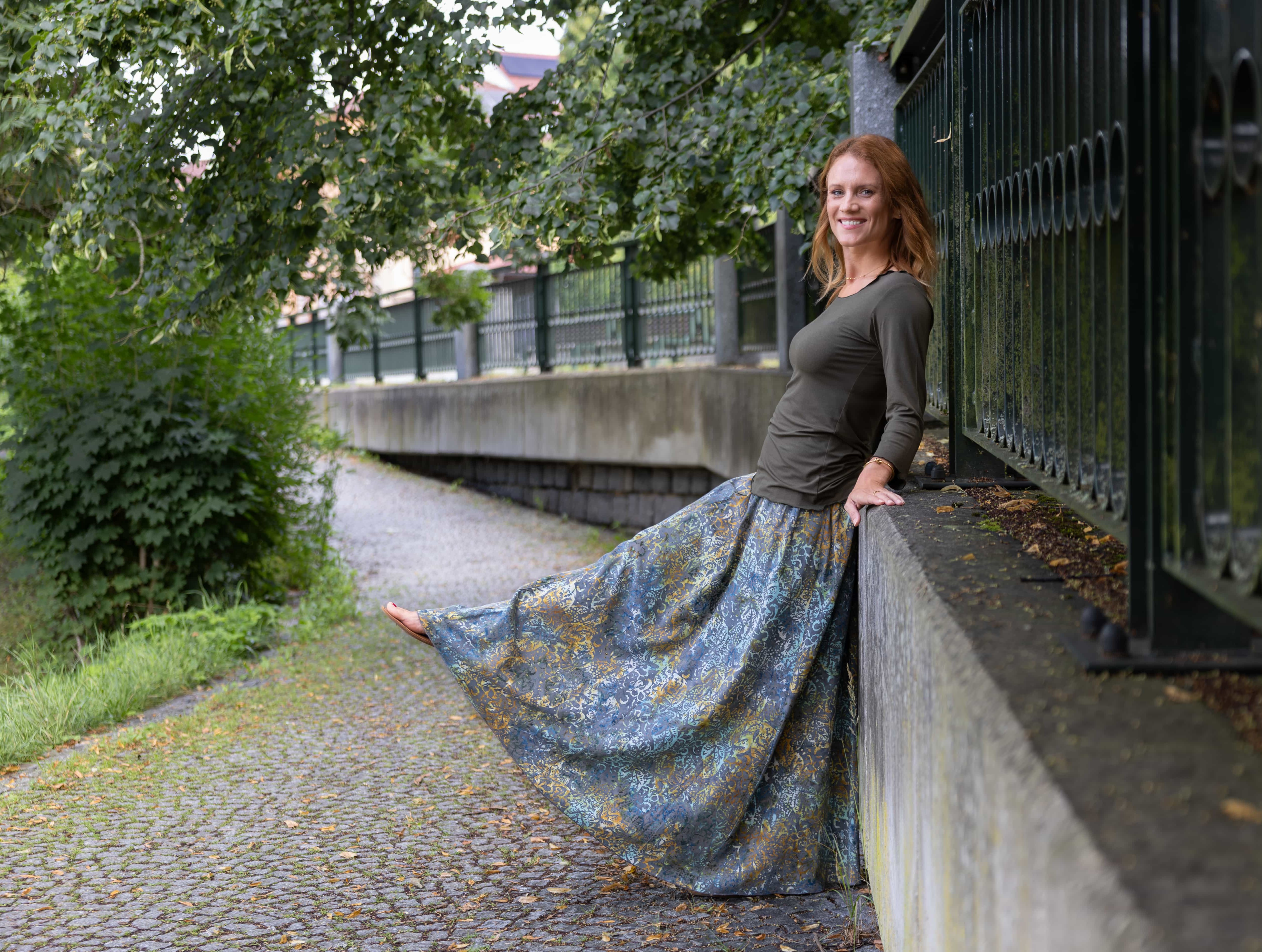 Vysoký elastický pas je nesmírně pohodlný na nošení. Sukně je vhodná i pro těhotné, pružný náplet v pase se krásně přizpůsobí bříšku a obejme ho po celém jeho obvodu. Ikonická Pacha sukně s délkou až na zem se krásně vlní při chůzi a vytváří ženskou siluetu.