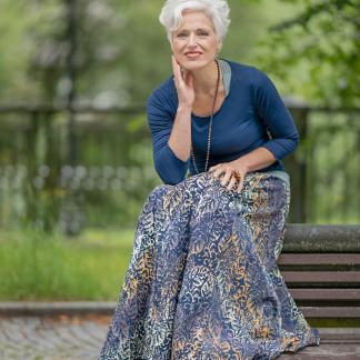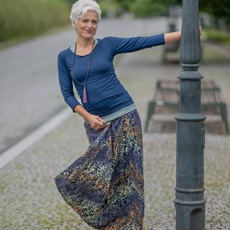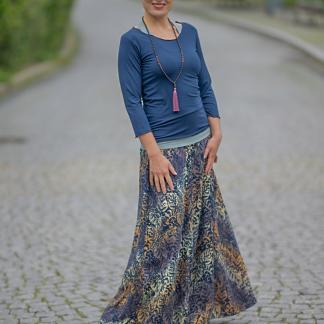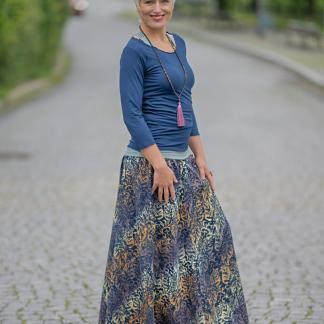 Připravte se na to, že touto úchvatnou, dlouhou sukní přitáhnete pozornost! Sukně je ušitá z lehké viskózové látky a pyšní se nádherným batikovým vzorem.