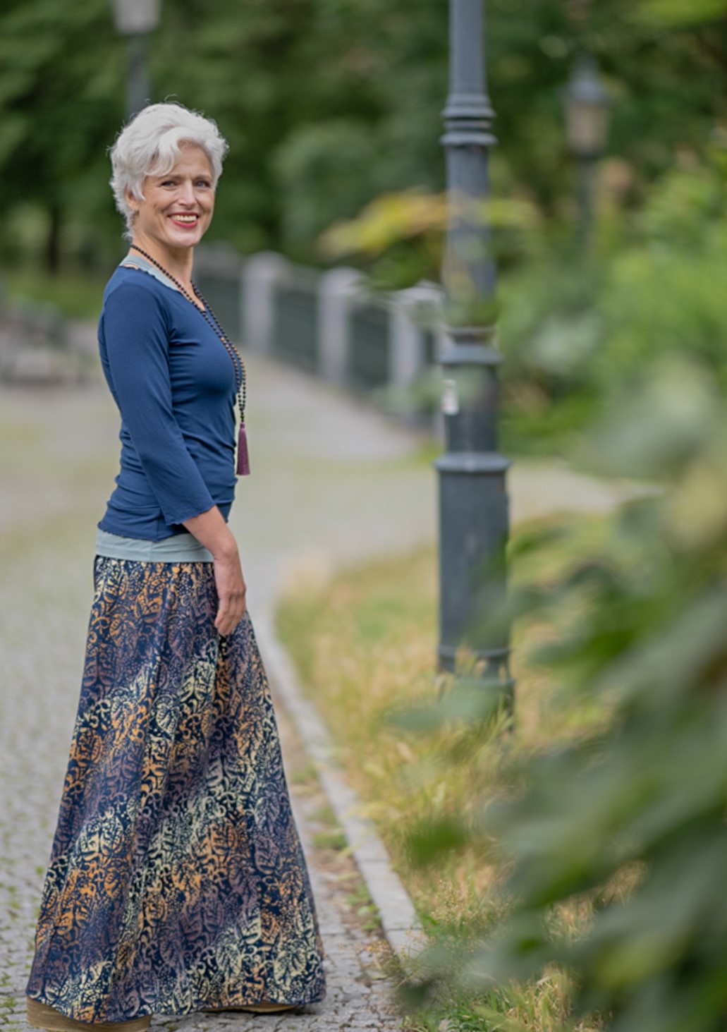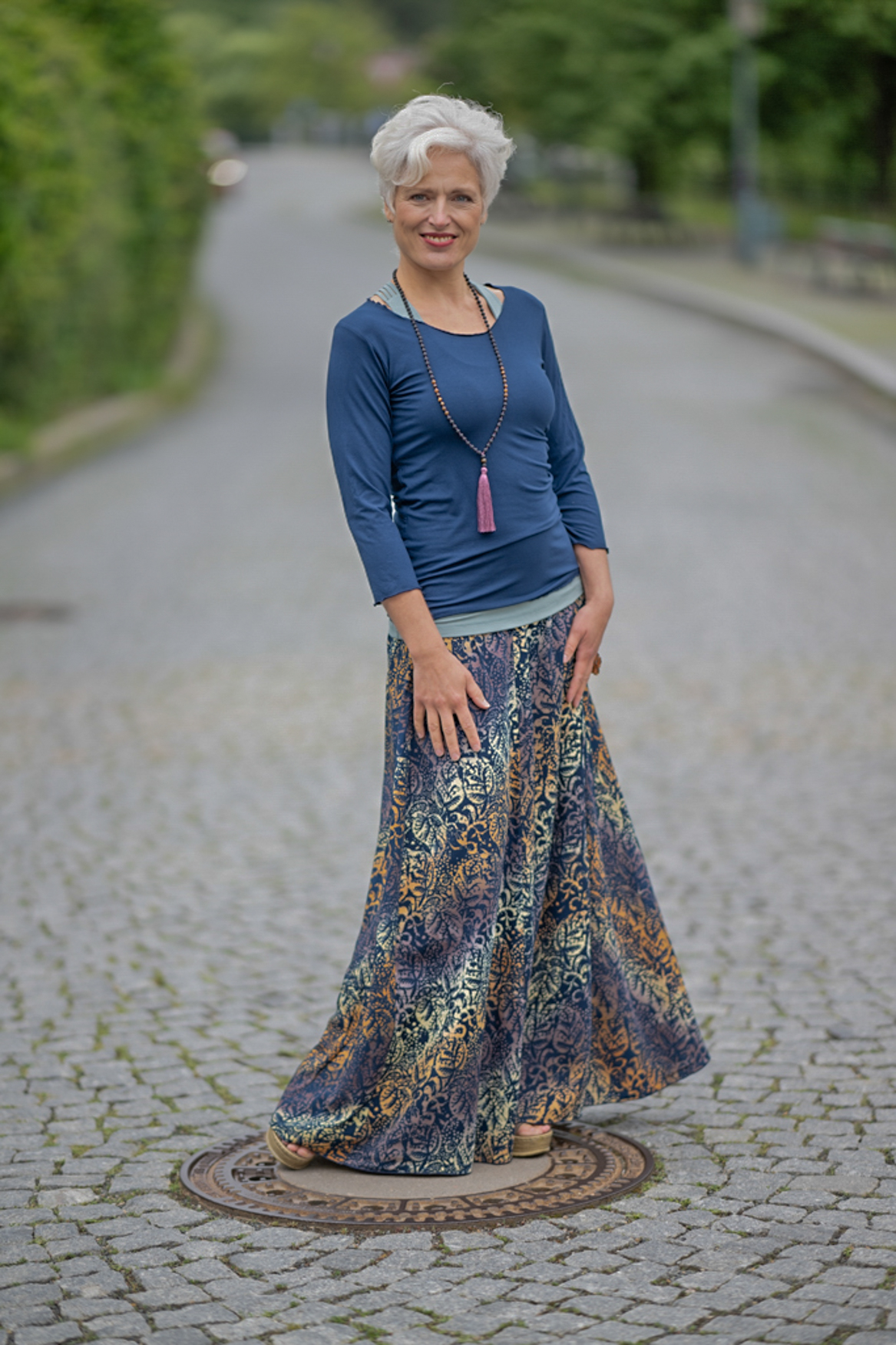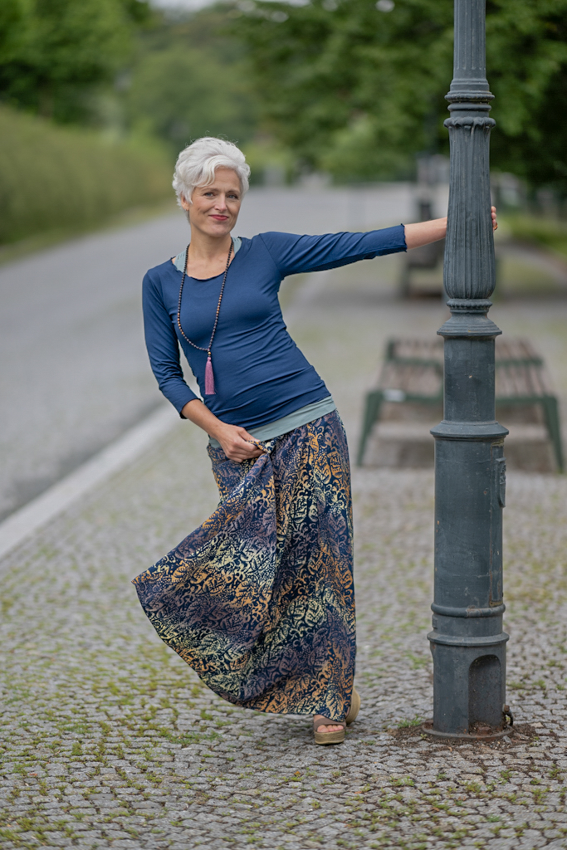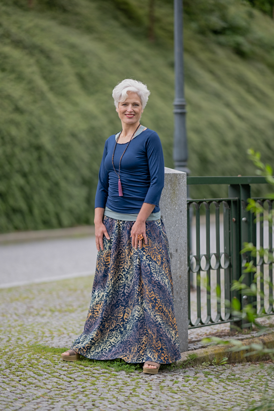 Vysoký elastický pas je nesmírně pohodlný na nošení. Sukně je vhodná i pro těhotné, pružný náplet v pase se krásně přizpůsobí bříšku a obejme ho po celém jeho obvodu. Ikonická Pacha sukně s délkou až na zem se krásně vlní při chůzi a vytváří ženskou siluetu.