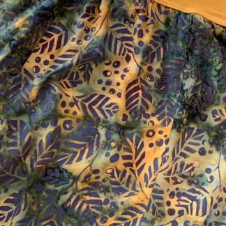 Materiál: 100 % viskóza, vosková batika. Lem: 90 % viskóza + 10% spandex.