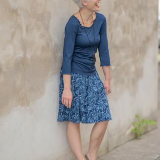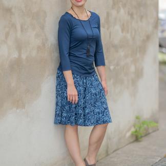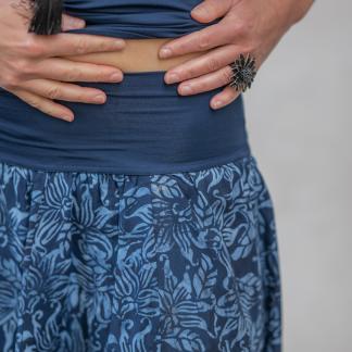 Krátká sukně s ručním potiskem voskové batiky. Pohodlný, pružný lem v pase si oblíbí především Vaše bříško, i to s miminkem uvnitř.