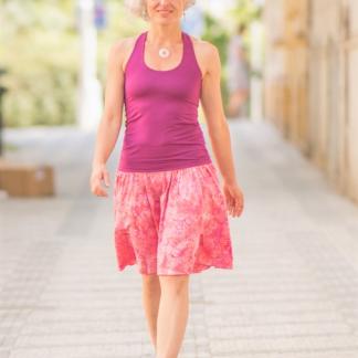 Barvy a vzory na látce vznikly v batikové dílně mistra Aldima. Sukni pro Vás ušila paní Agung v Indonésii. Tady si můžete přečíst rozhovor s Agung. Povídaly jsme si s ní o životě, o její práci i o muži jejích snů :)