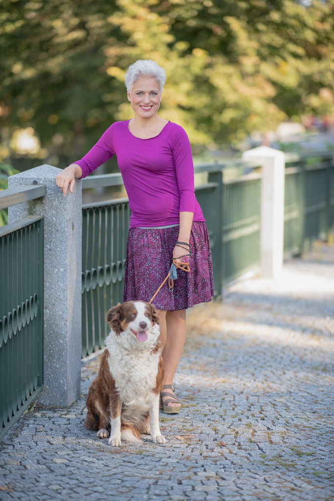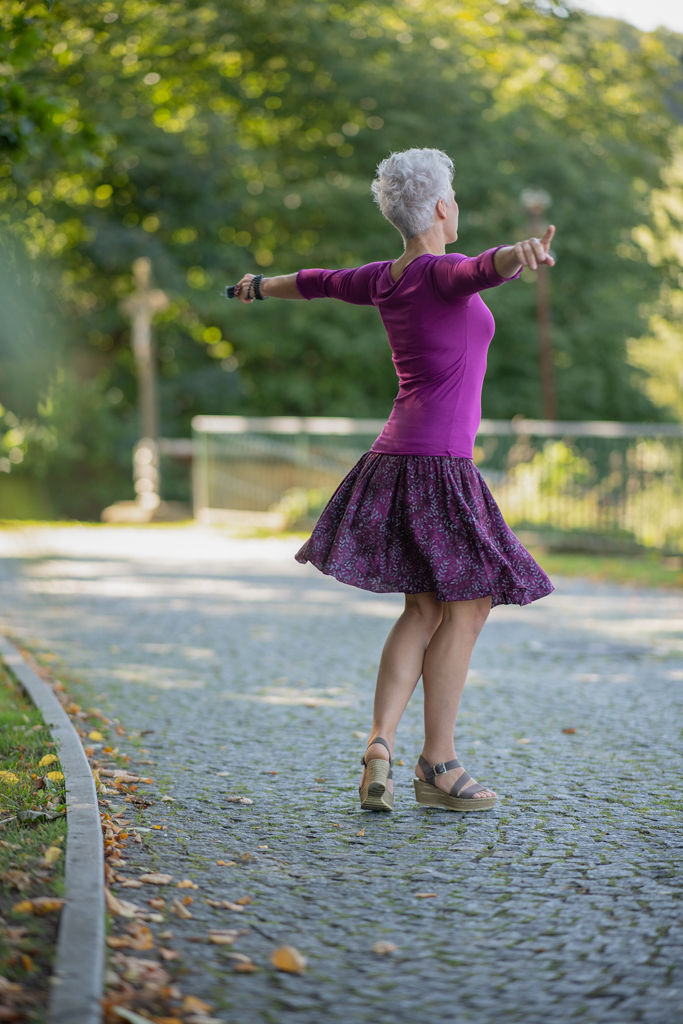 Barva sukně: lilková barva s jemný šedým vzorkem