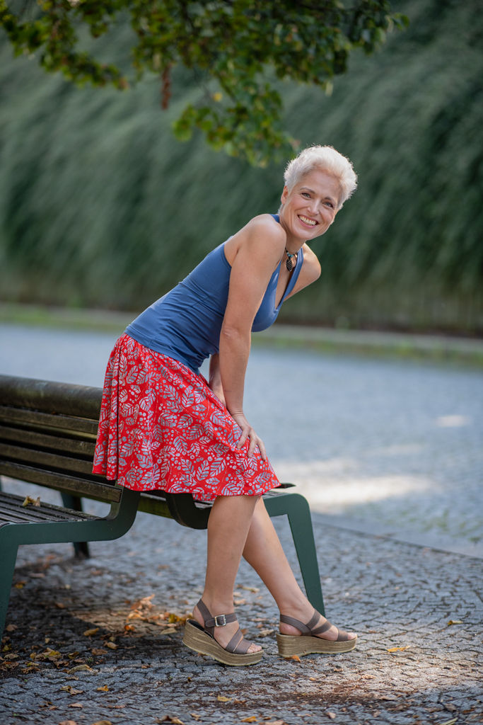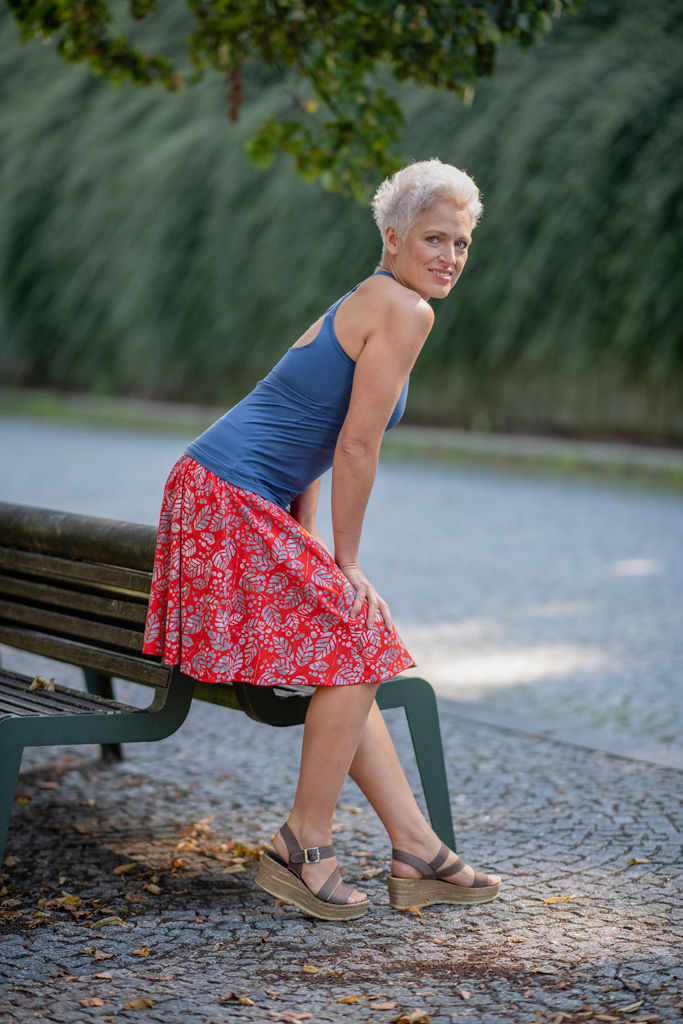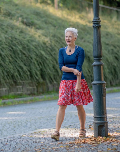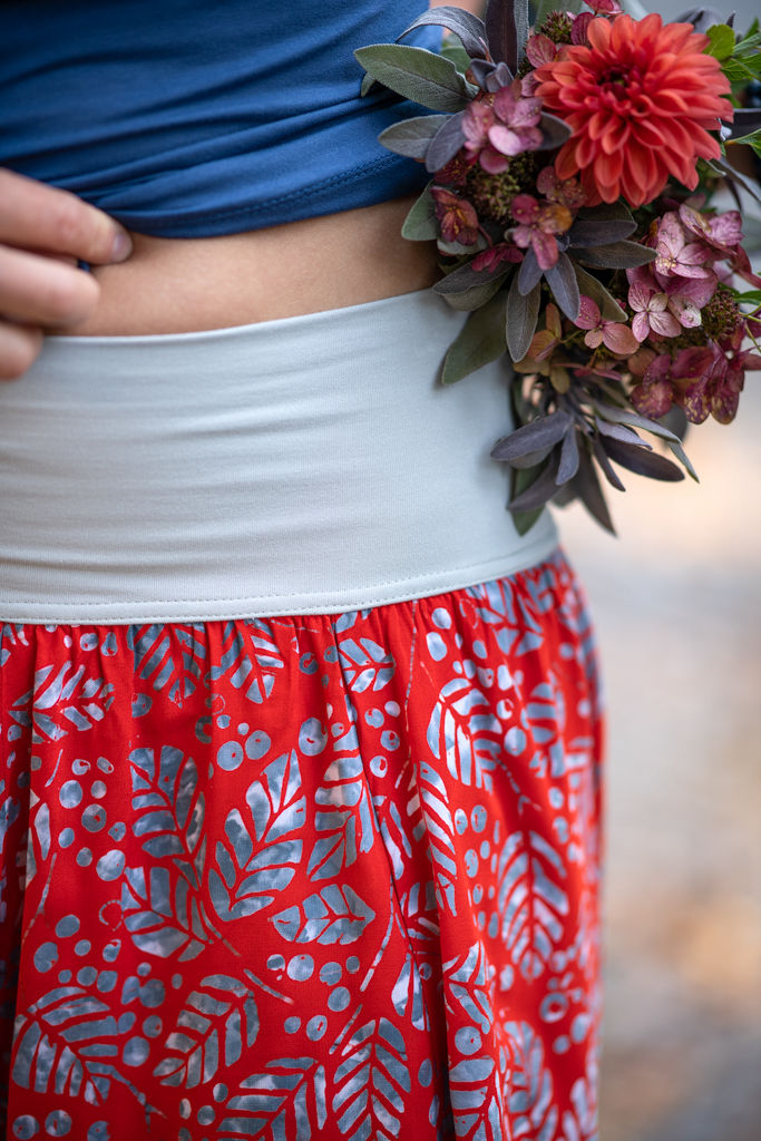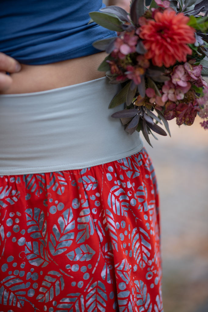 Elastický pas je nesmírně pohodlný na nošení. Sukně je vhodná i pro těhotné, pružný náplet v pase se krásně přizpůsobí bříšku a obejme ho po celém jeho obvodu. Ikonická Pacha sukně v délce ke kolenům se krásně vlní při chůzi, vytvářejíc ženskou siluetu, která je pohodlná a stylová zároveň.