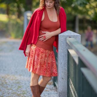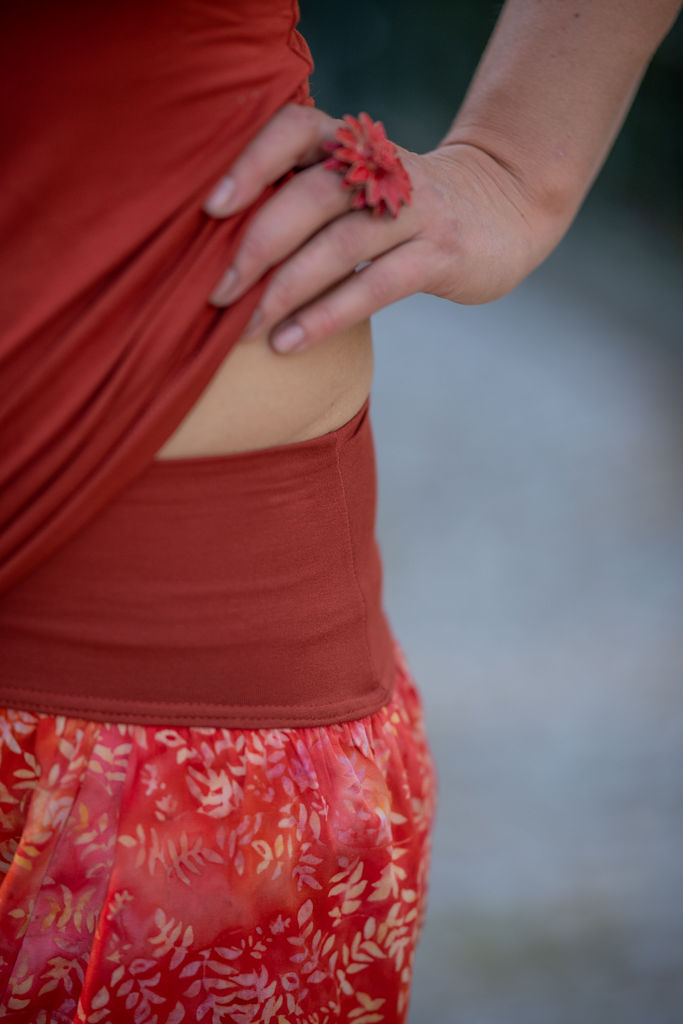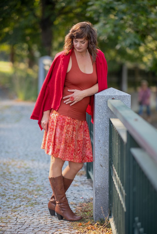 Elastický pas je nesmírně pohodlný na nošení. Sukně je vhodná i pro těhotné, pružný náplet v pase se krásně přizpůsobí bříšku a obejme ho po celém jeho obvodu. Ikonická Pacha sukně v délce ke kolenům se krásně vlní při chůzi, vytvářejíc ženskou siluetu, která je pohodlná a stylová zároveň.