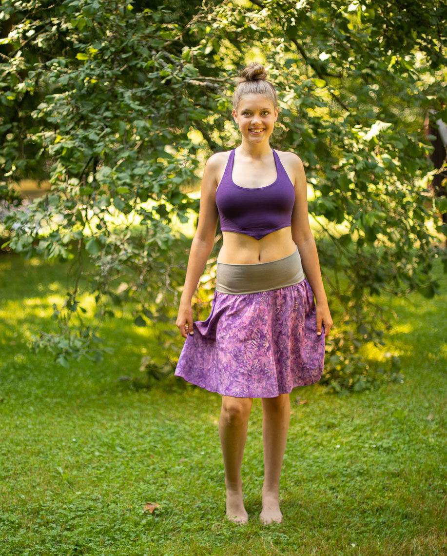 Krátká sukně s ručním potiskem voskové batiky. Pohodlný, pružný lem v pase si oblíbí především Vaše bříško, i to s miminkem uvnitř.