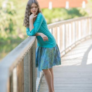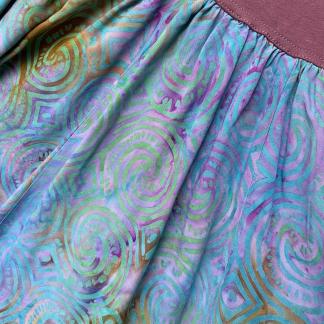 Krátká sukně s ručním potiskem voskové batiky. Pohodlný, pružný lem v pase si oblíbí především Vaše bříško, i to s miminkem uvnitř.