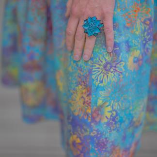 Barvy a vzory na látce vznikly v batikové dílně mistra Aldima. Sukni pro Vás ušila paní Agung v Indonésii. Tady si můžete přečíst rozhovor s Agung. Povídaly jsme si s ní o životě, o její práci i o muži jejích snů :)