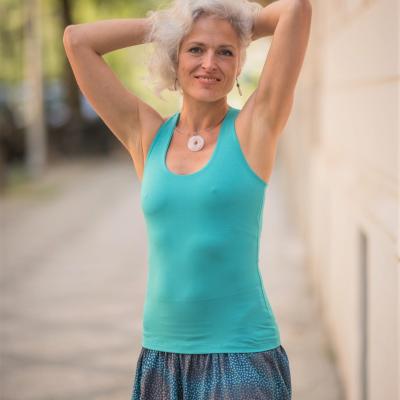 Krátká sukně s ručním potiskem voskové batiky. Pohodlný, pružný lem v pase si oblíbí především Vaše bříško, i to s miminkem uvnitř.