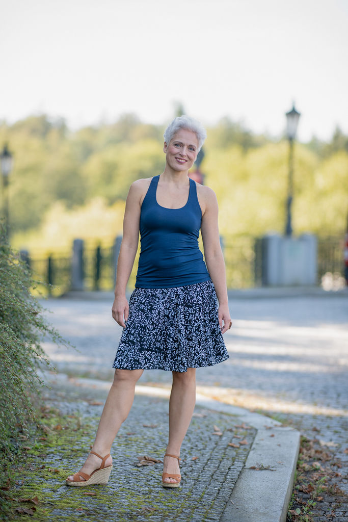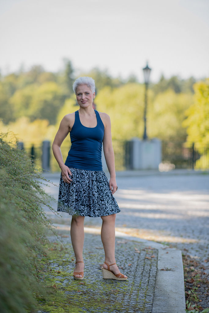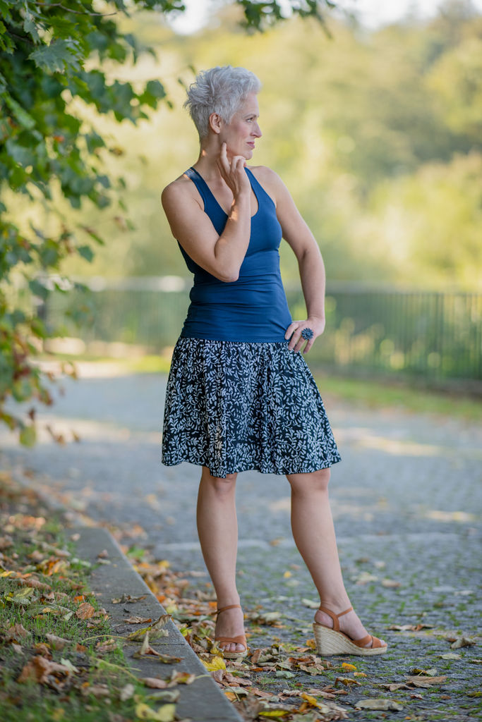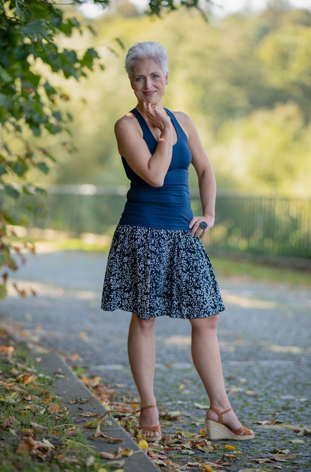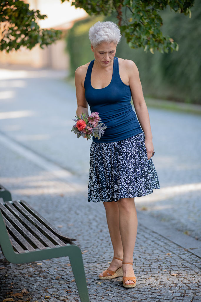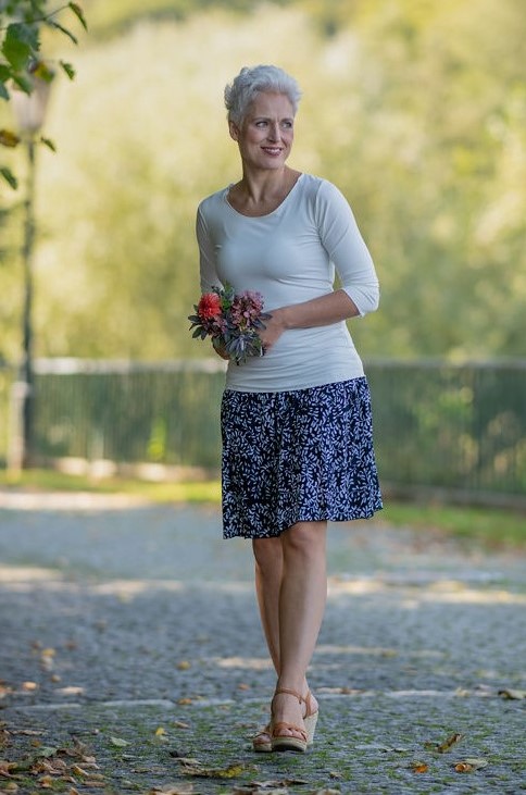 Elastický pas je nesmírně pohodlný na nošení. Sukně je vhodná i pro těhotné, pružný náplet v pase se krásně přizpůsobí bříšku a obejme ho po celém jeho obvodu. Ikonická Pacha sukně v délce ke kolenům se krásně vlní při chůzi, vytvářejíc ženskou siluetu, která je pohodlná a stylová zároveň.