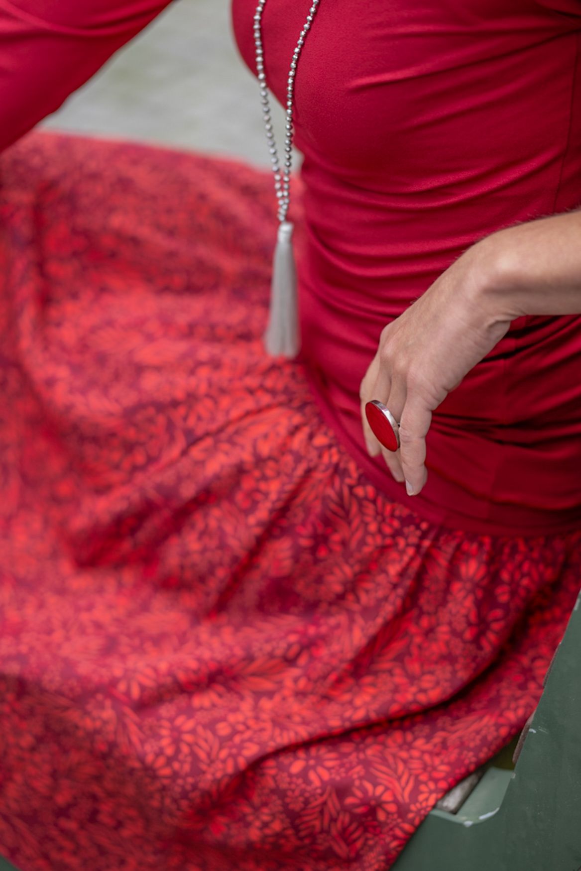 Barvy a vzory na látce vznikly v batikové dílně mistra Aldima. Sukni pro Vás ušila paní Agung v Indonésii. Tady si můžete přečíst rozhovor s Agung. Povídaly jsme si s ní o životě, o její práci i o muži jejích snů :)