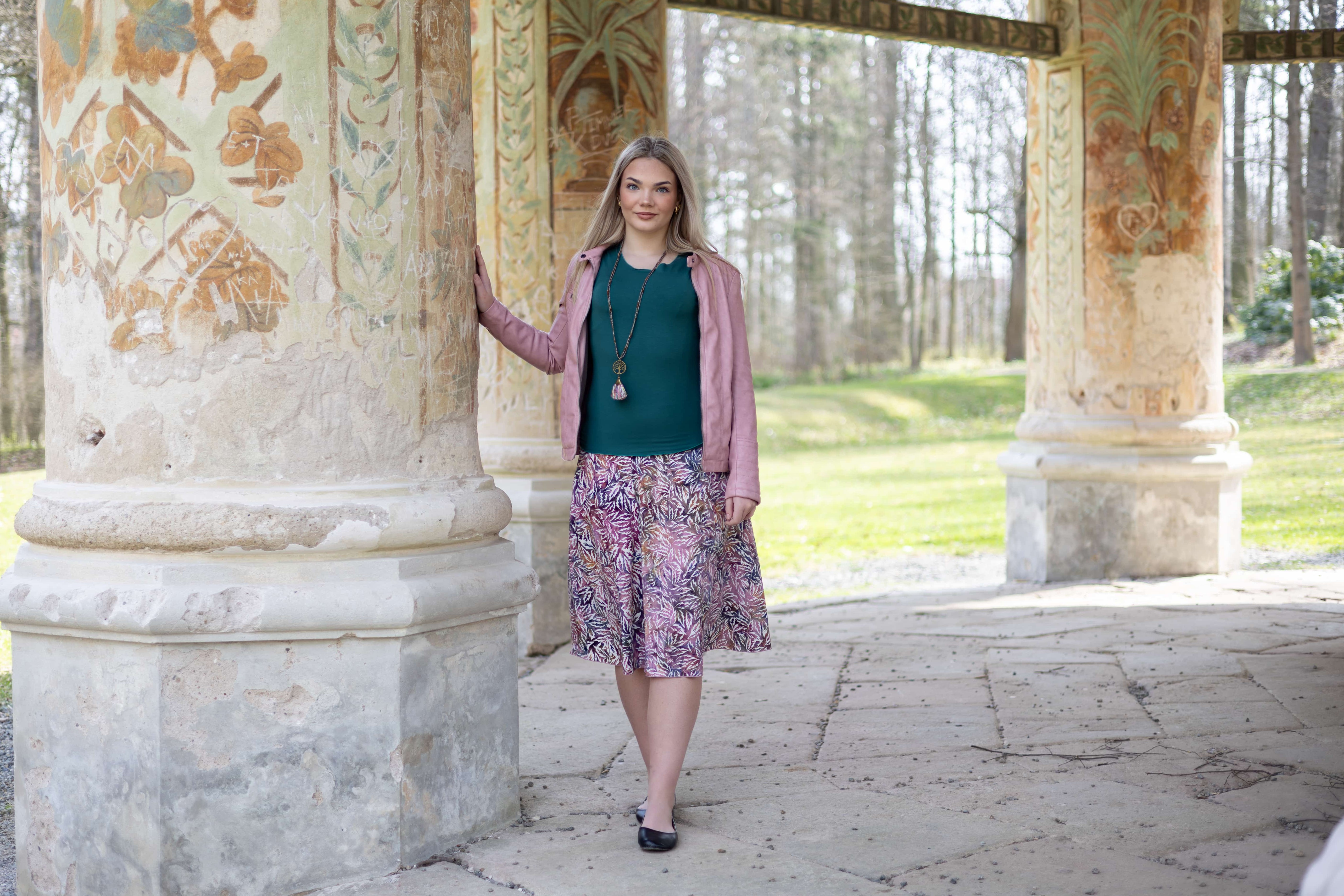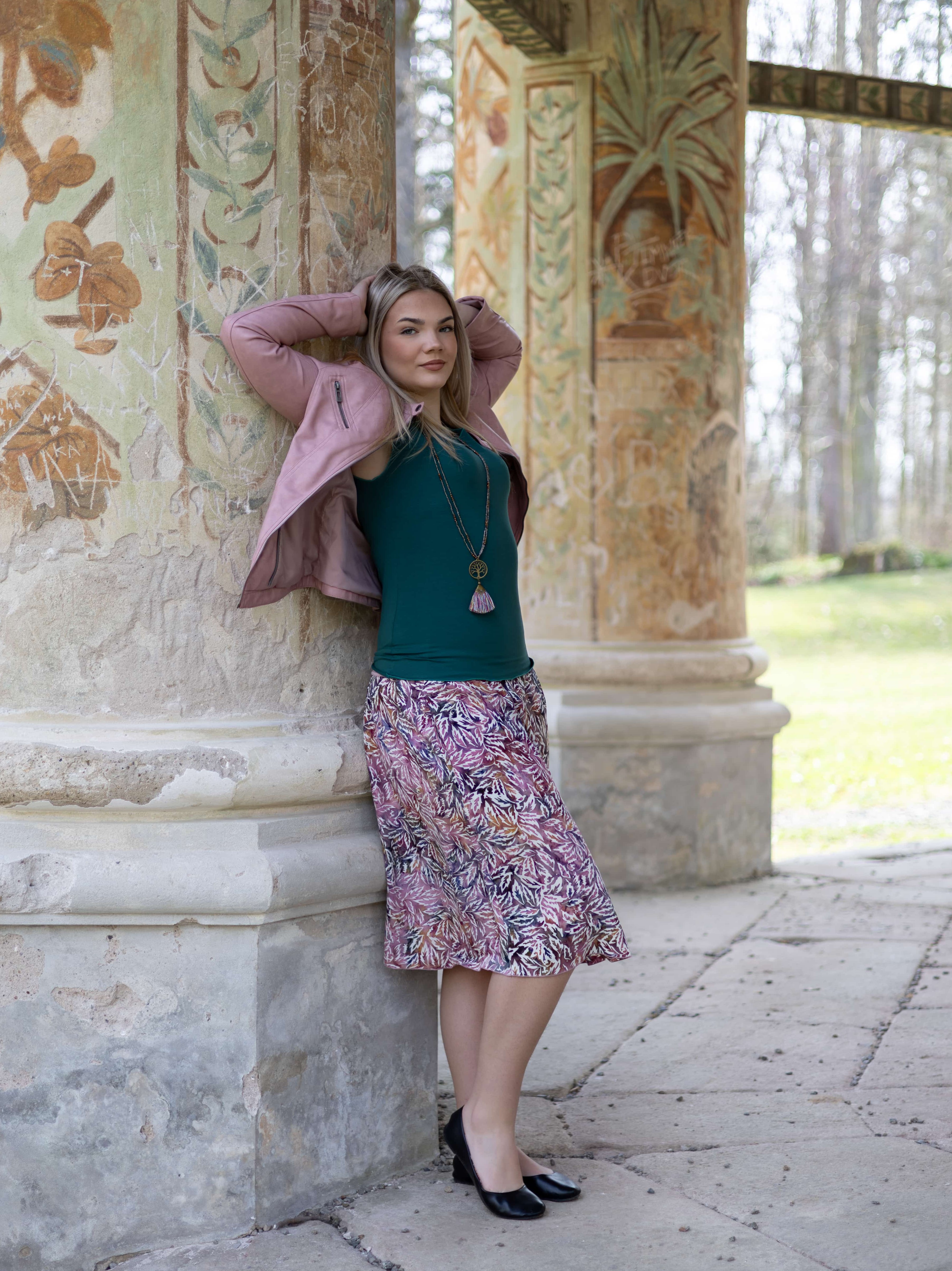 Vysoký elastický pas je nesmírně pohodlný na nošení. Sukně je vhodná i pro těhotné, pružný náplet v pase se krásně přizpůsobí bříšku a obejme ho po celém jeho obvodu. Ikonická Pacha sukně s délkou na dlaň pod kolena vytváří ženskou siluetu, je pohodlná a stylová zároveň.