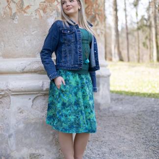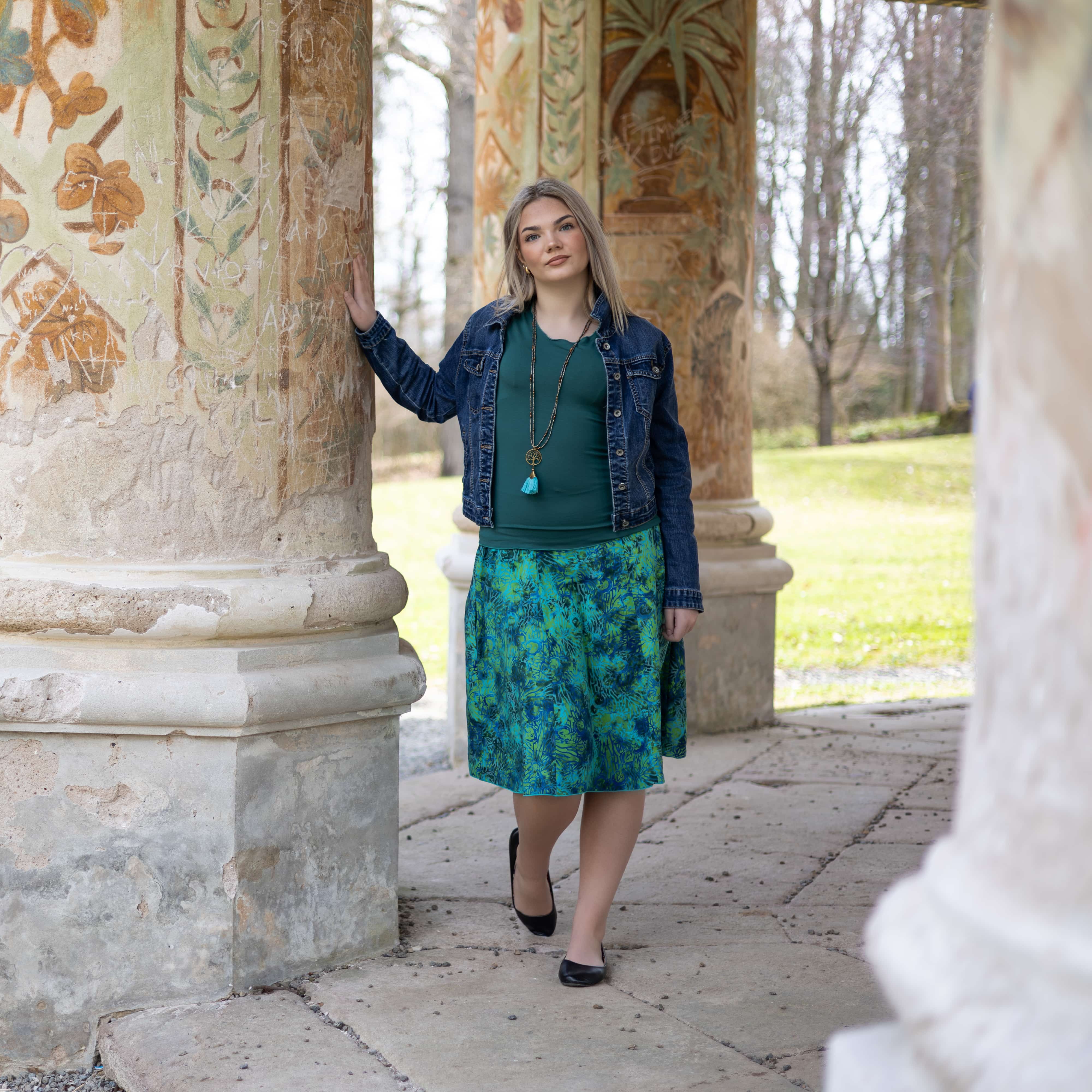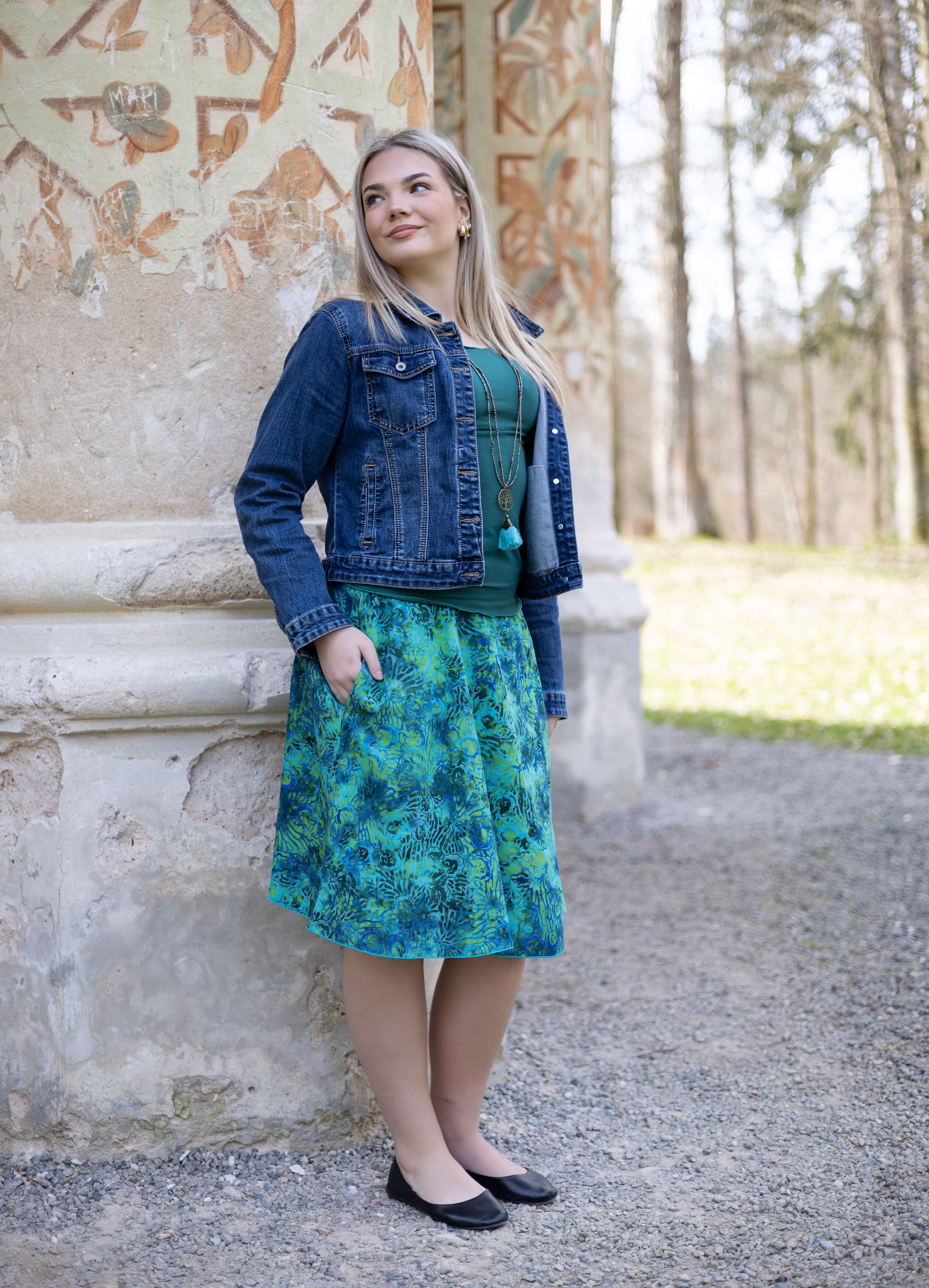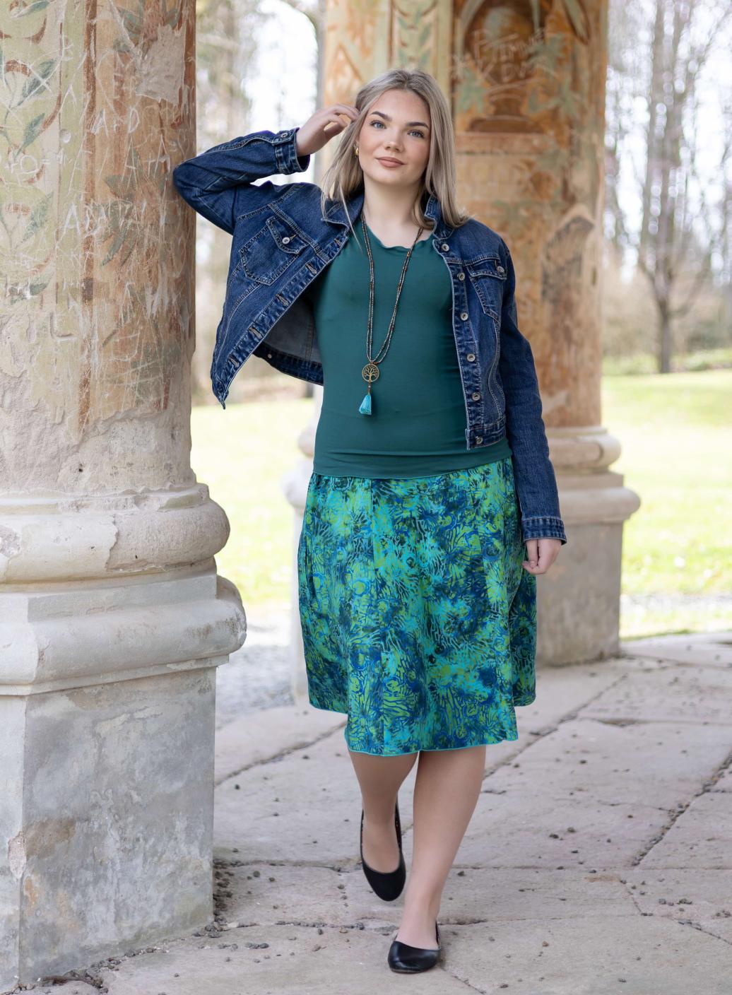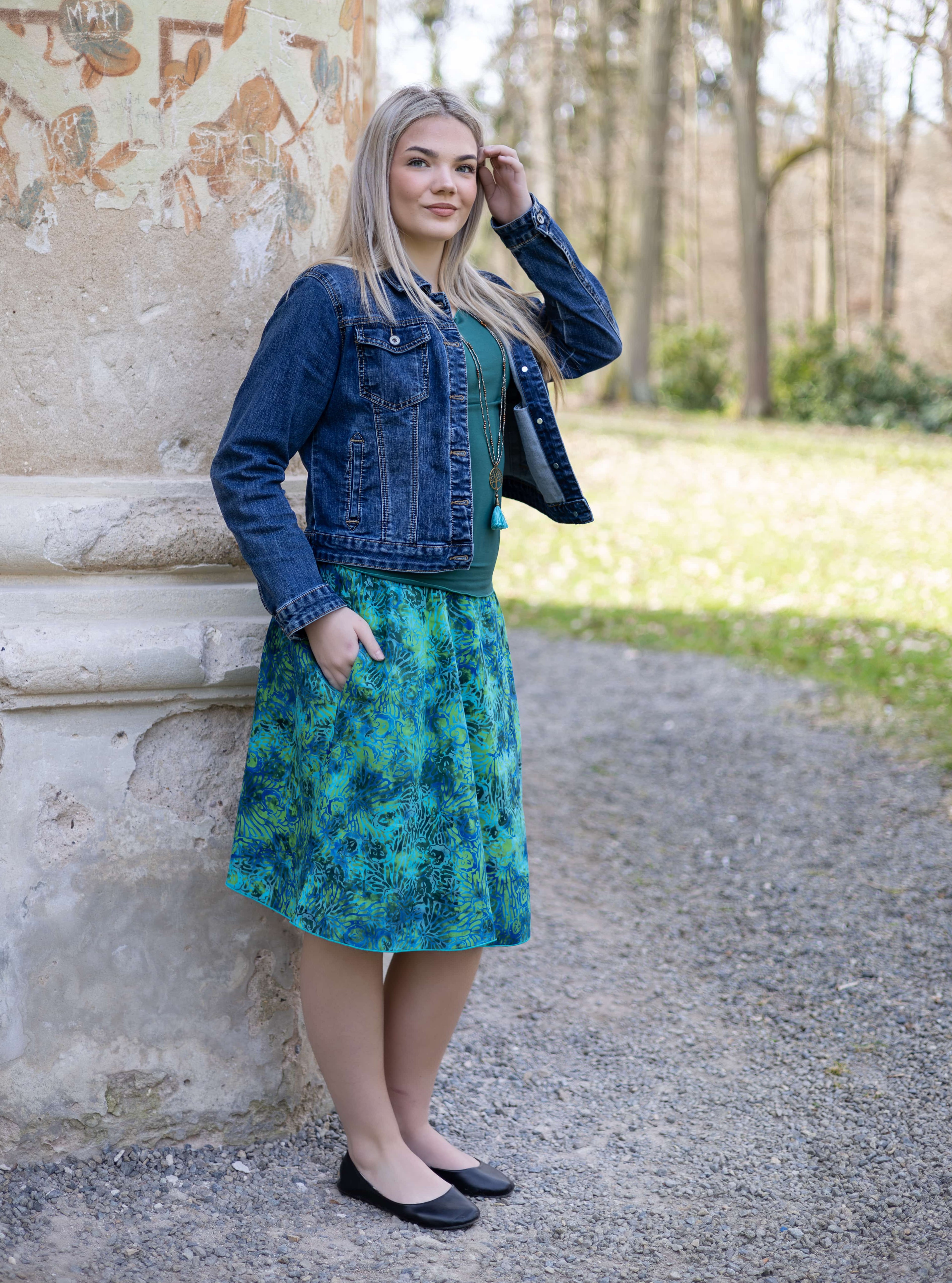 Barva sukně: odstíny zelené, tyrkysové, petrolejové a modré