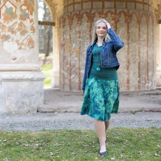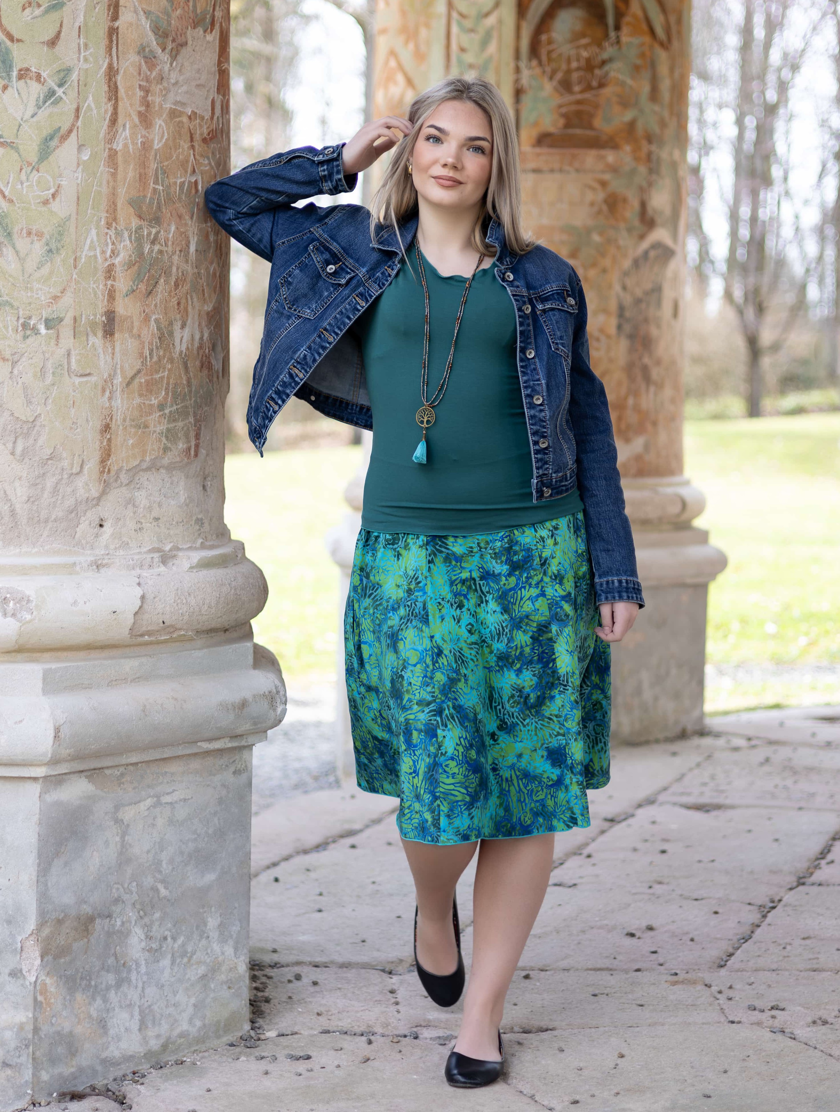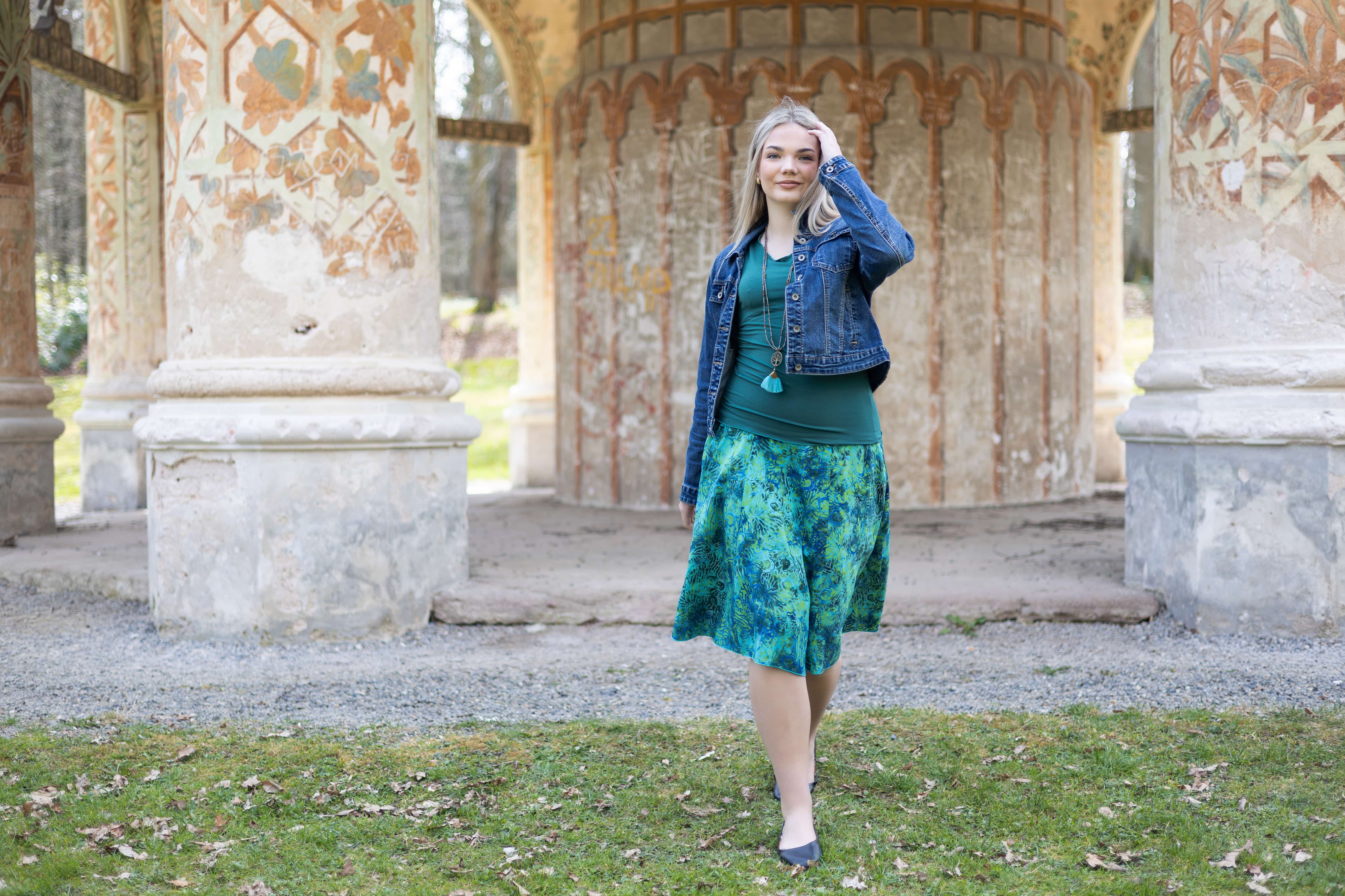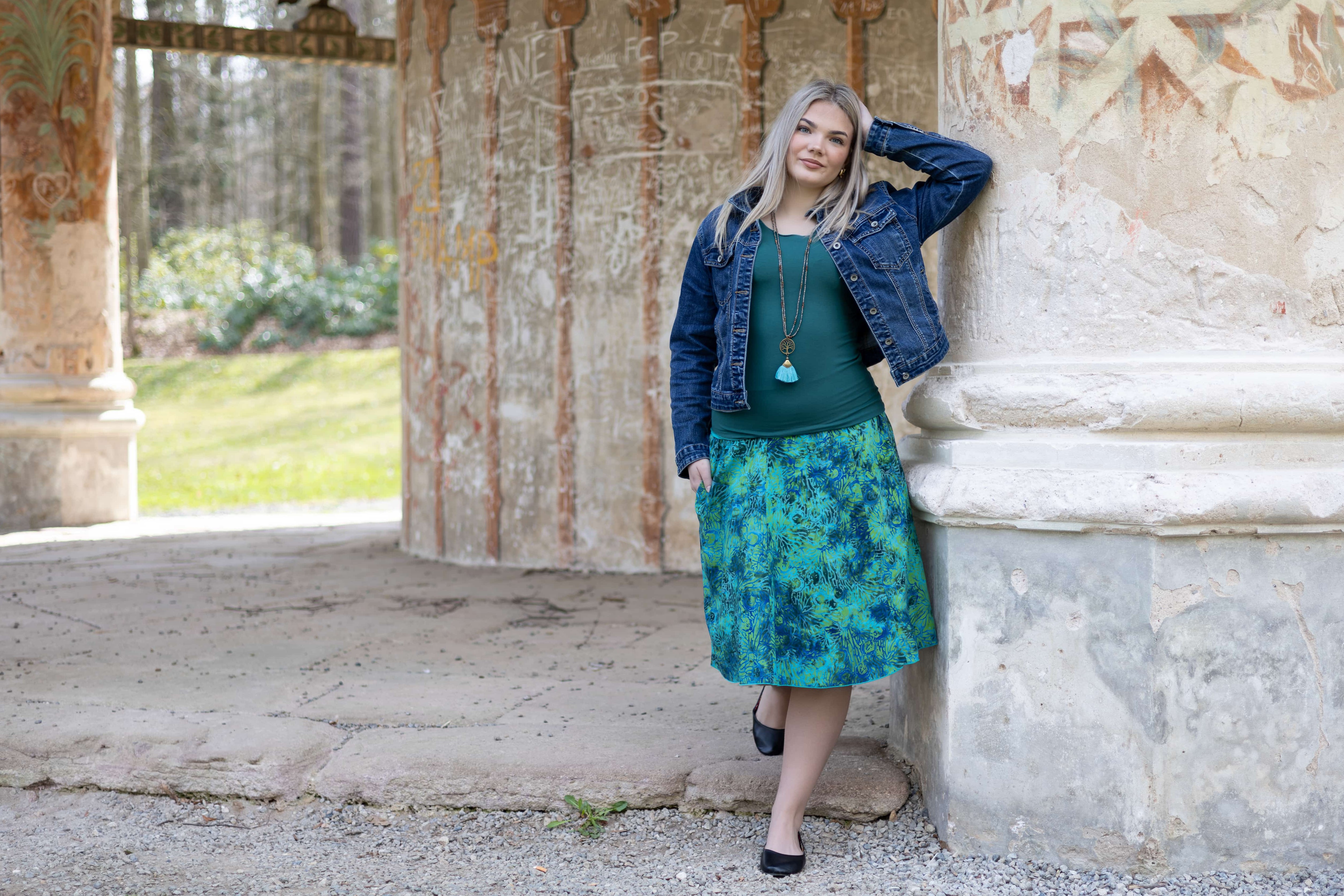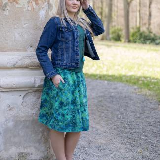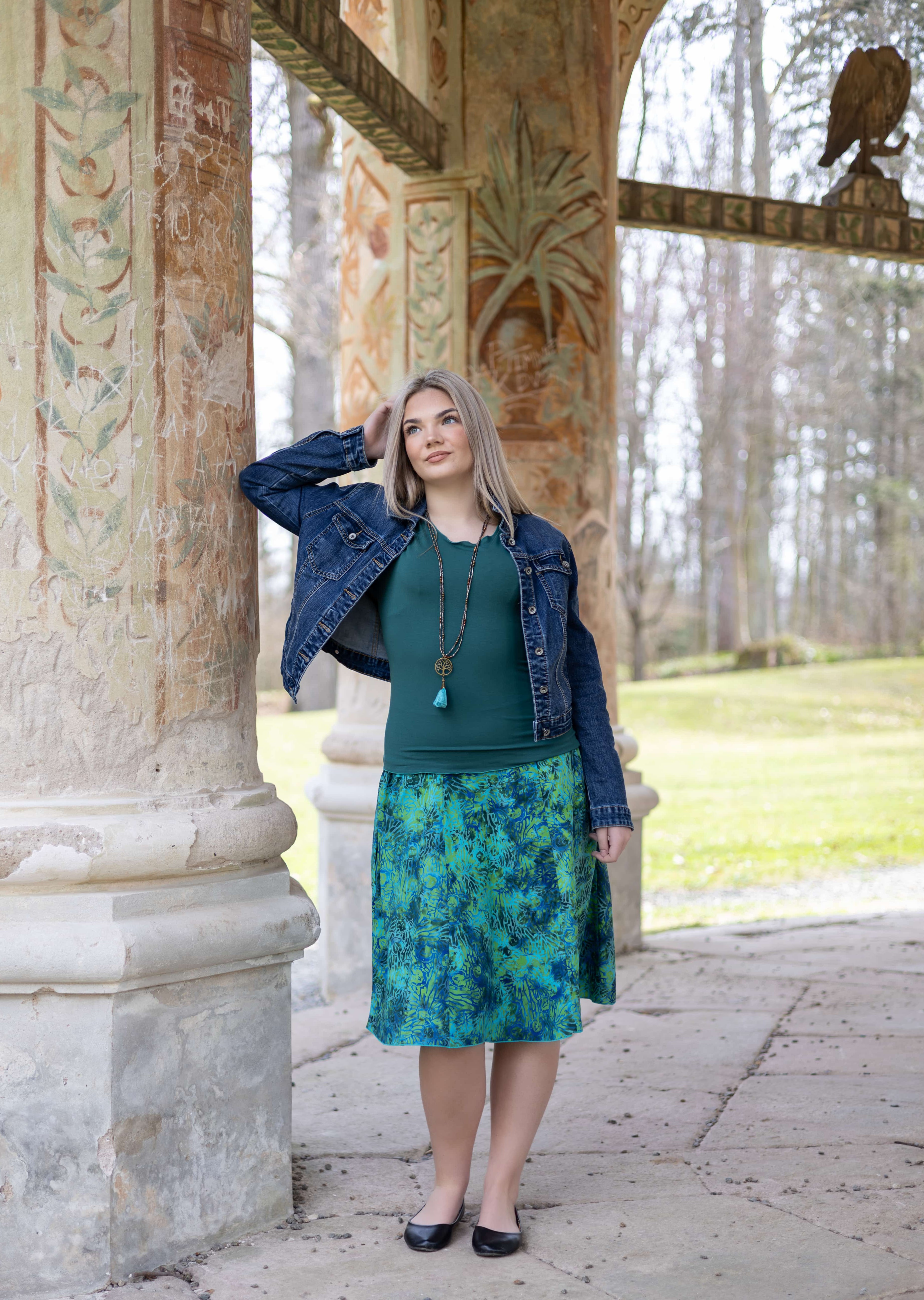 Barva sukně: odstíny zelené, tyrkysové, petrolejové a modré