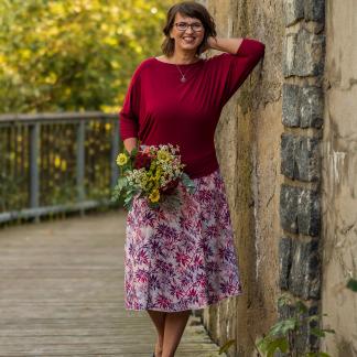 Připravte se na to, že touto úchvatnou, midi sukní přitáhnete pozornost! Sukně je ušitá z lehké viskózové látky a pyšní se nádherným batikovým vzorem a kapsami.