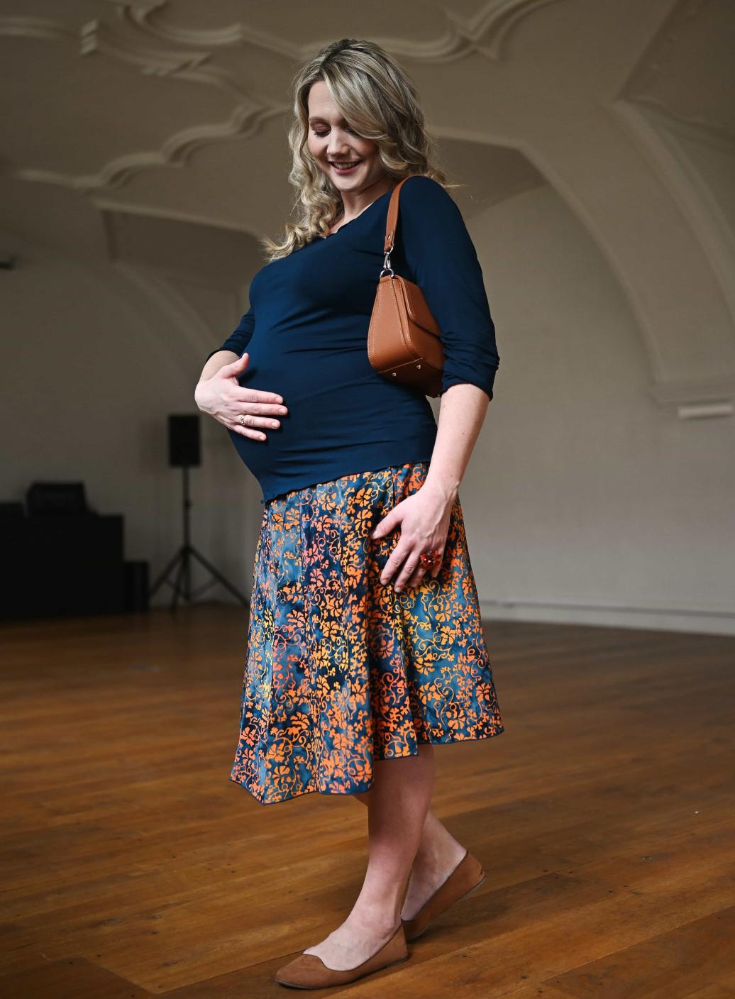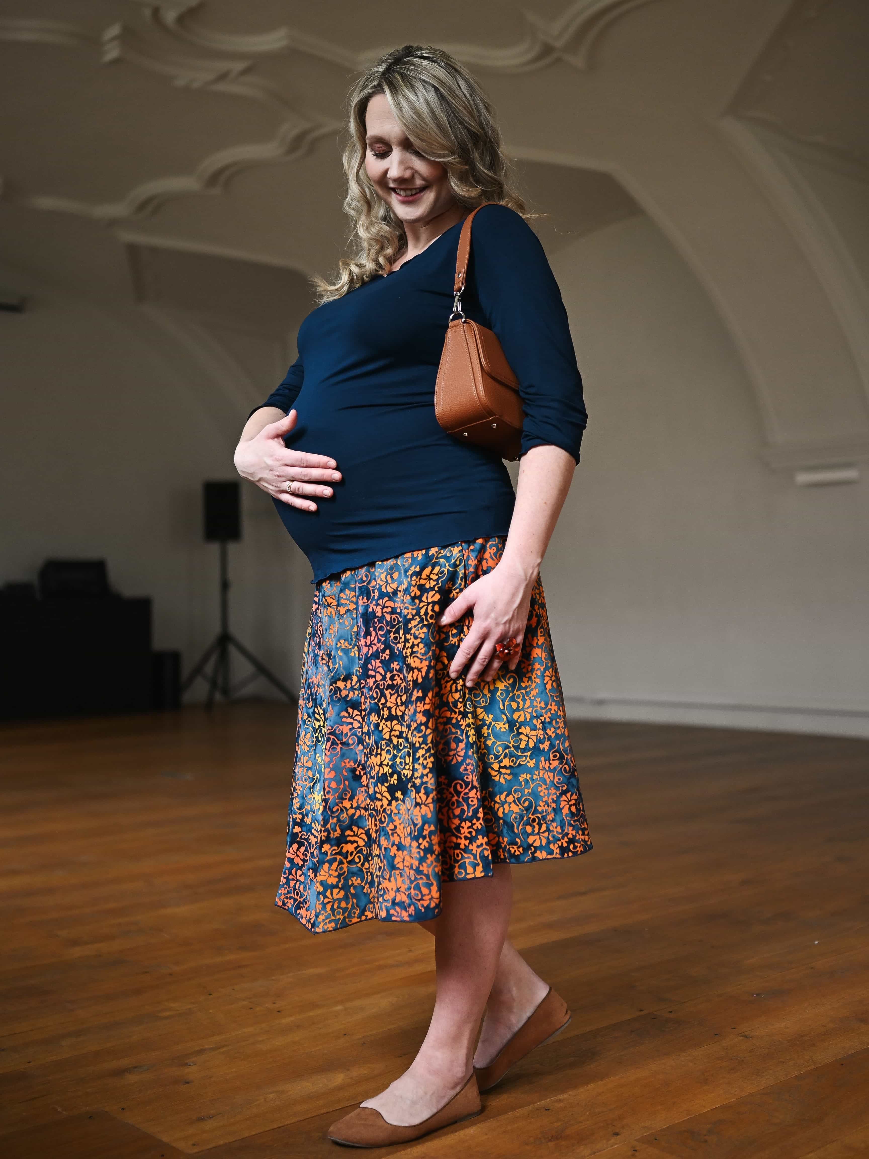 Vysoký elastický pas je nesmírně pohodlný na nošení. Sukně je vhodná i pro těhotné, pružný náplet v pase se krásně přizpůsobí bříšku a obejme ho po celém jeho obvodu. Ikonická Pacha sukně s délkou na dlaň pod kolena vytváří ženskou siluetu, je pohodlná a stylová zároveň.