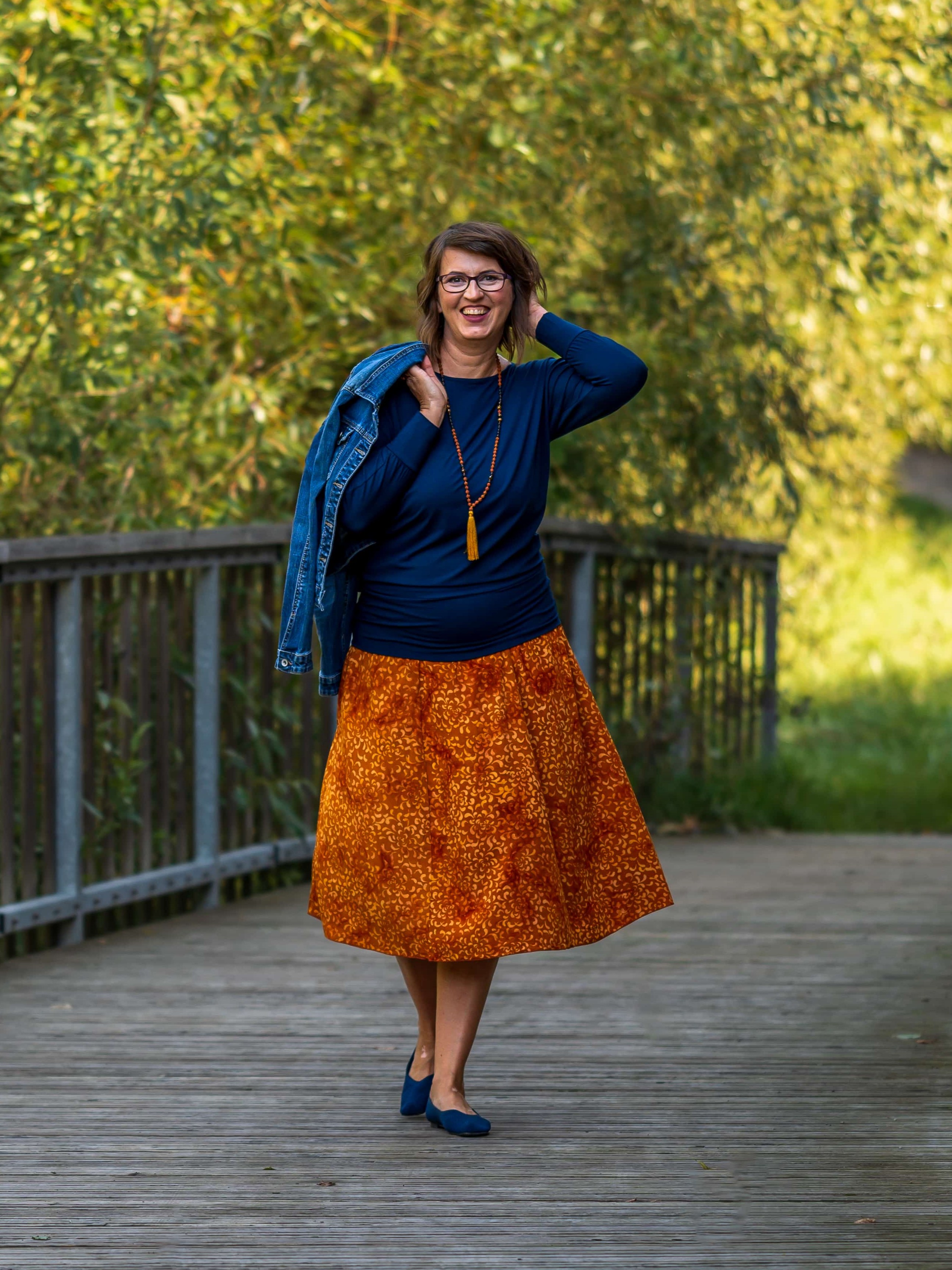 Vysoký elastický pas je nesmírně pohodlný na nošení. Sukně je vhodná i pro těhotné, pružný náplet v pase se krásně přizpůsobí bříšku a obejme ho po celém jeho obvodu. Ikonická Pacha sukně s délkou na dlaň pod kolena vytváří ženskou siluetu, je pohodlná a stylová zároveň.