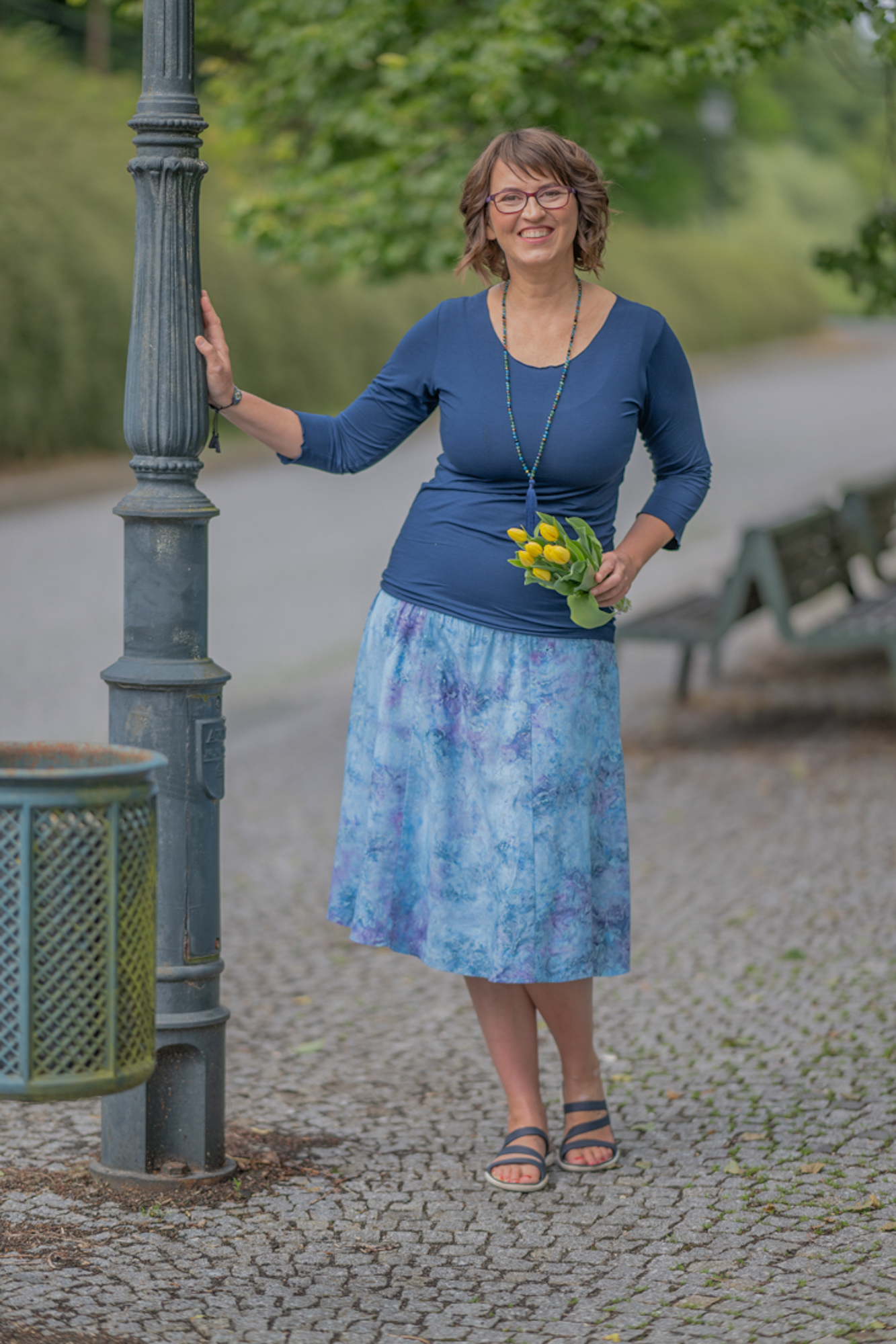 Připravte se na to, že touto úchvatnou, midi sukní přitáhnete pozornost! Sukně je ušitá z lehké viskózové látky a pyšní se nádherným batikovým vzorem a kapsami.