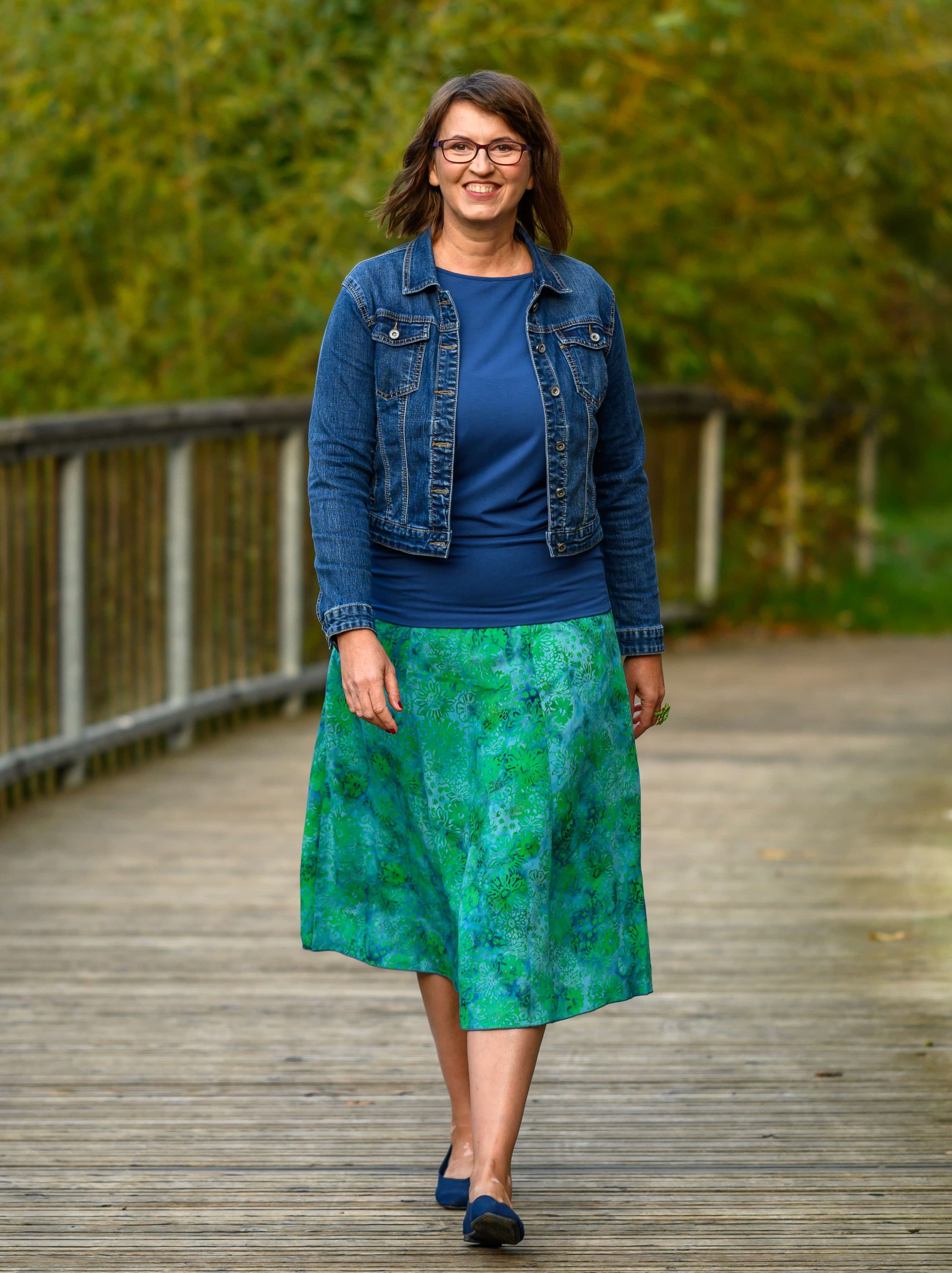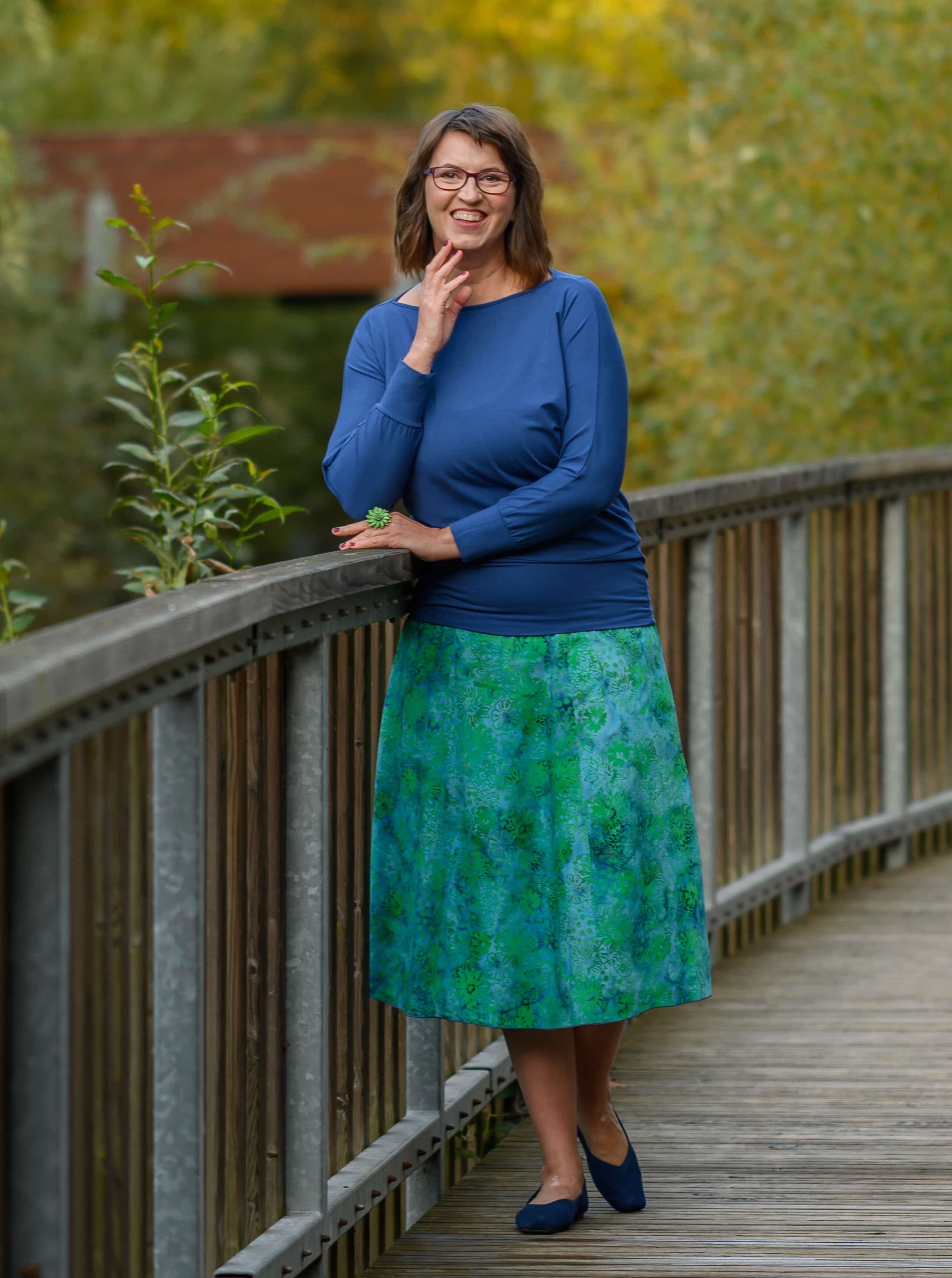 Vysoký elastický pas je nesmírně pohodlný na nošení. Sukně je vhodná i pro těhotné, pružný náplet v pase se krásně přizpůsobí bříšku a obejme ho po celém jeho obvodu. Ikonická Pacha sukně s délkou na dlaň pod kolena vytváří ženskou siluetu, je pohodlná a stylová zároveň.