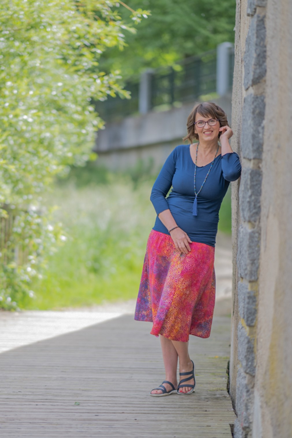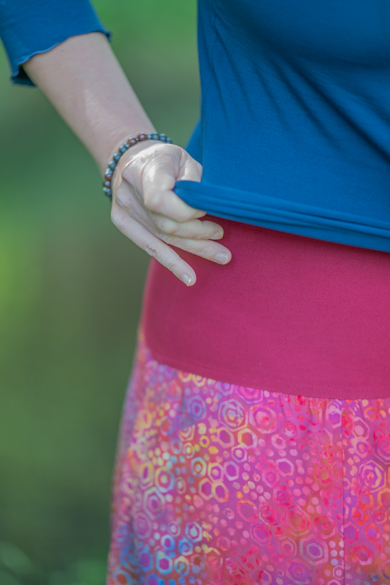 Vysoký elastický pas je nesmírně pohodlný na nošení. Sukně je vhodná i pro těhotné, pružný náplet v pase se krásně přizpůsobí bříšku a obejme ho po celém jeho obvodu. Ikonická Pacha sukně s délkou na dlaň pod kolena vytváří ženskou siluetu, je pohodlná a stylová zároveň.