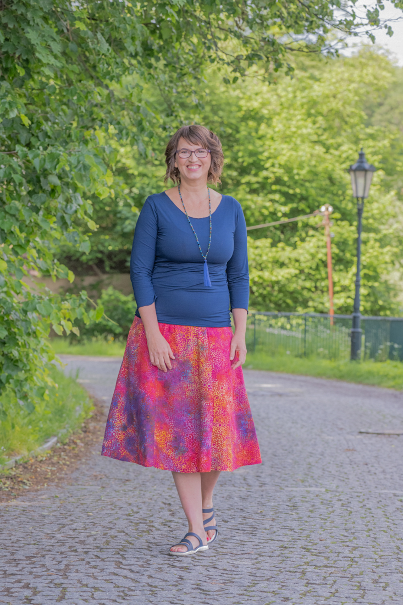 Připravte se na to, že touto úchvatnou, midi sukní přitáhnete pozornost! Sukně je ušitá z lehké viskózové látky a pyšní se nádherným batikovým vzorem a kapsami.