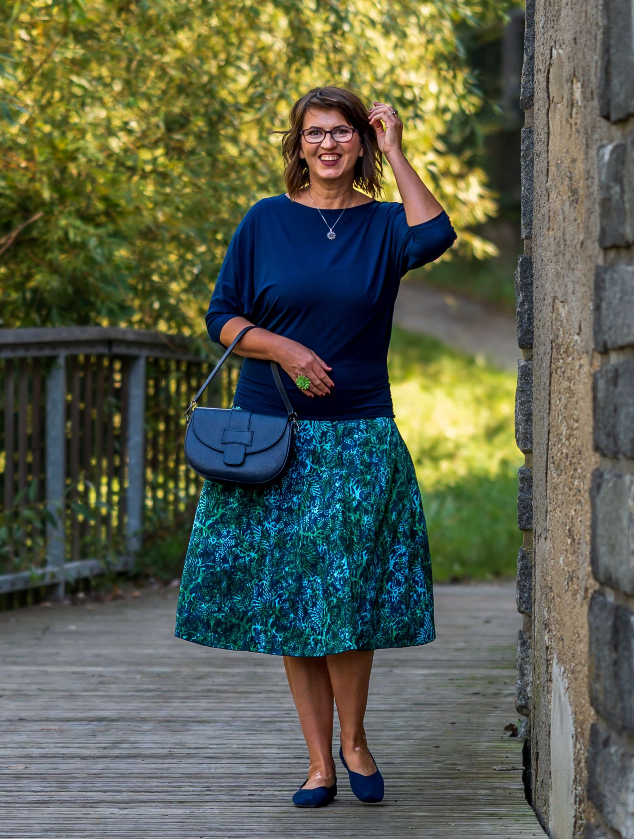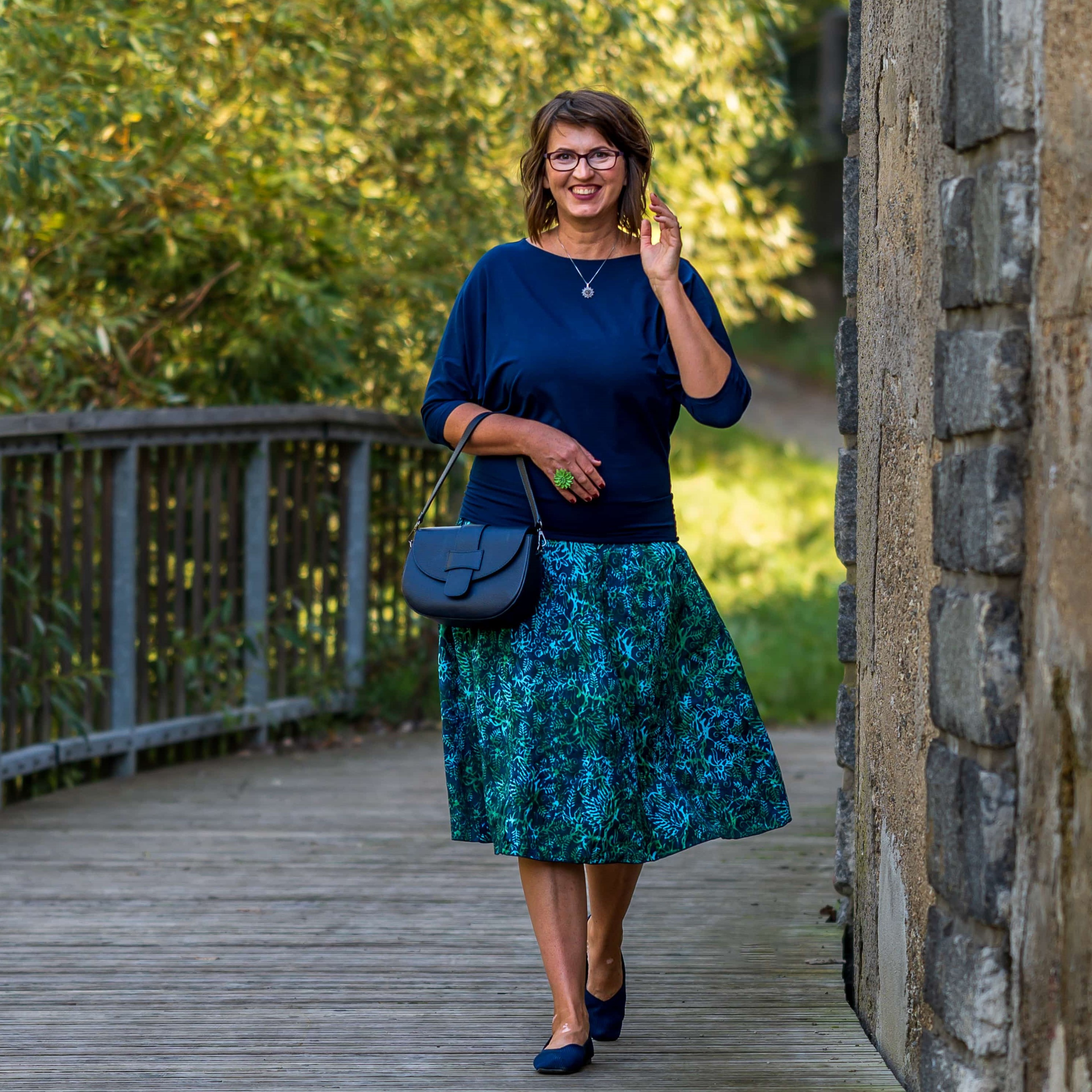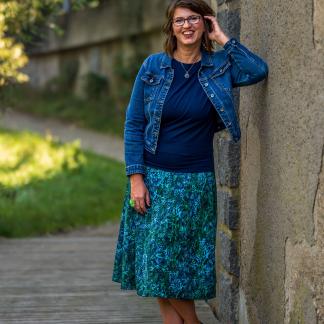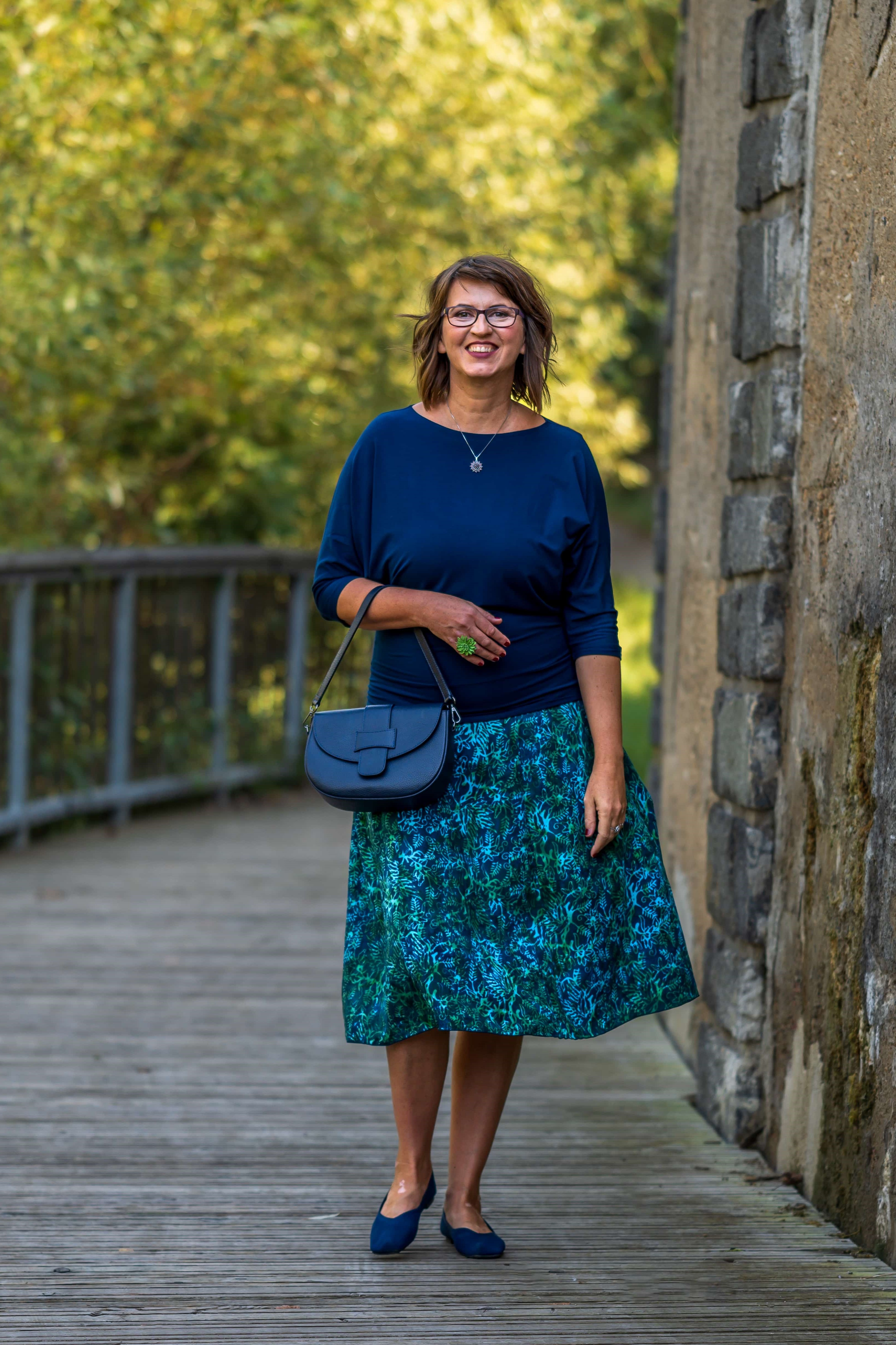 Barva sukně: petrolejová, zelená a ve vzoru světle modrá