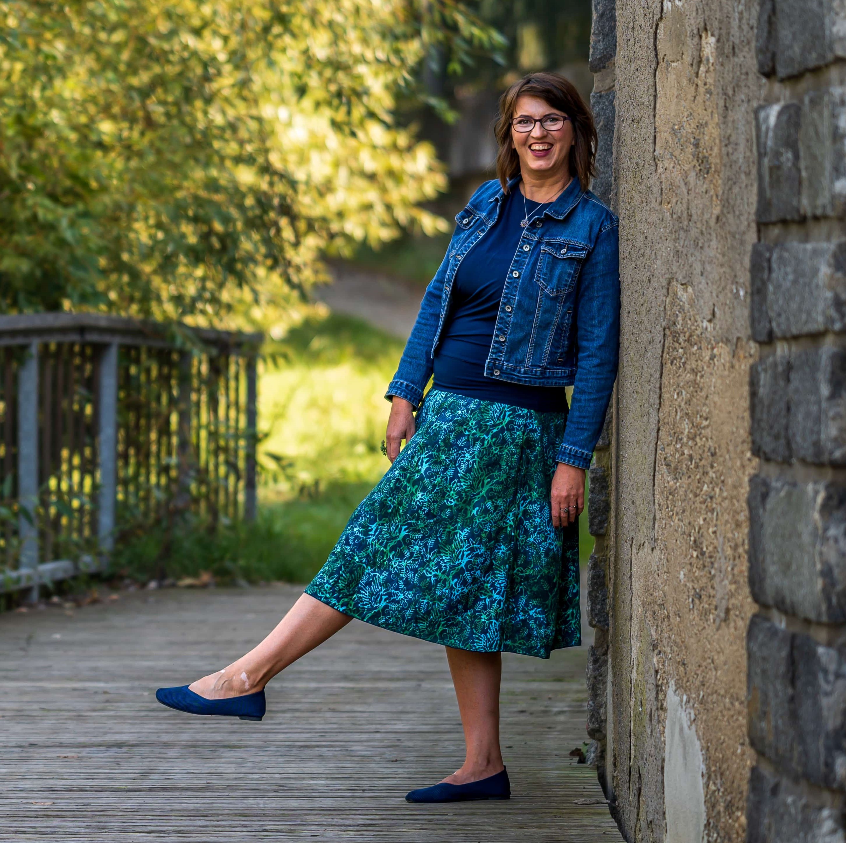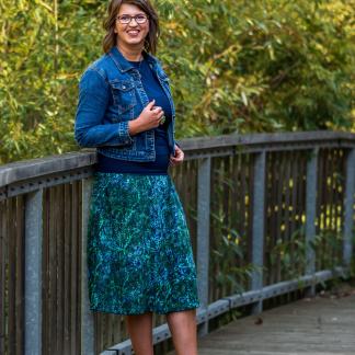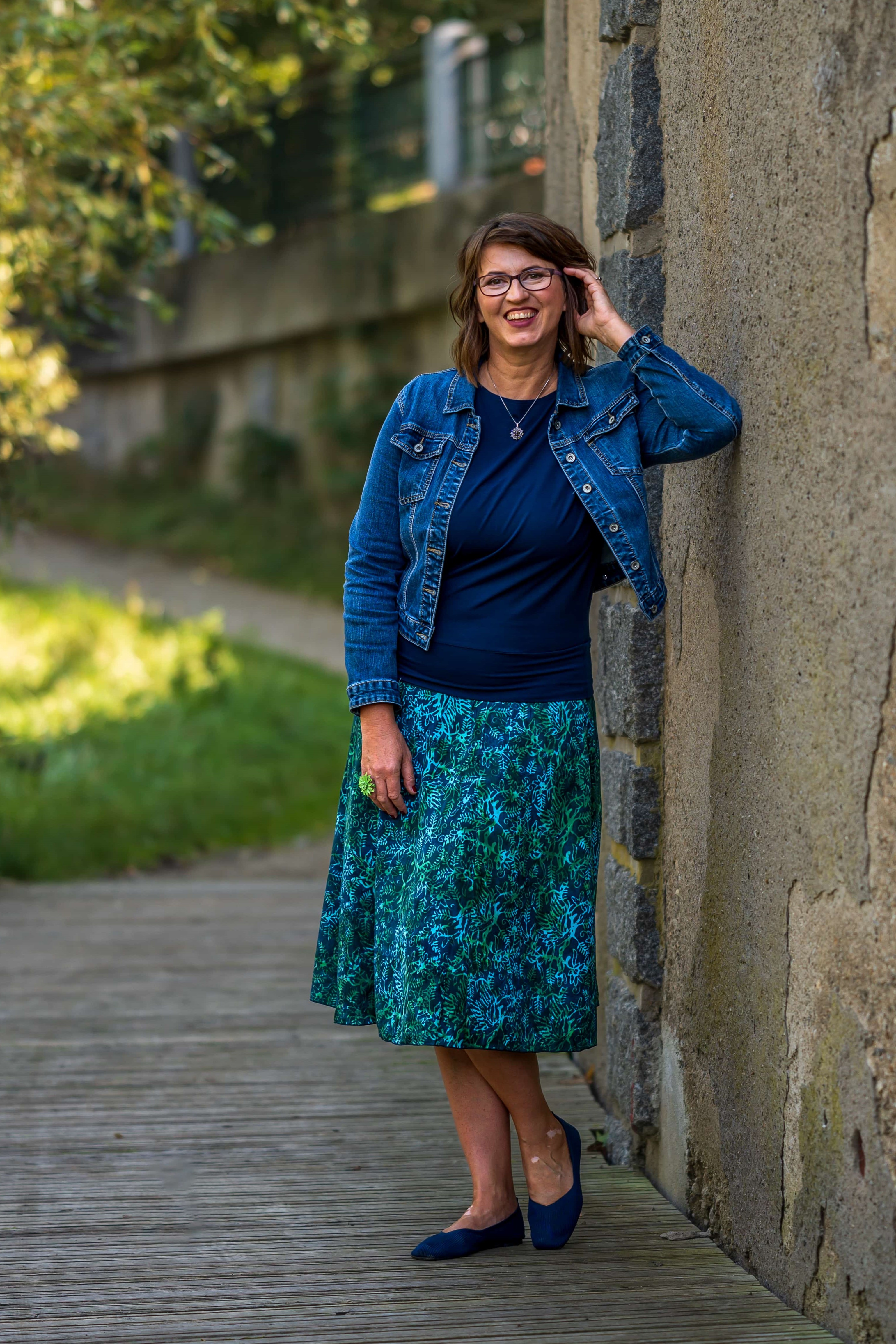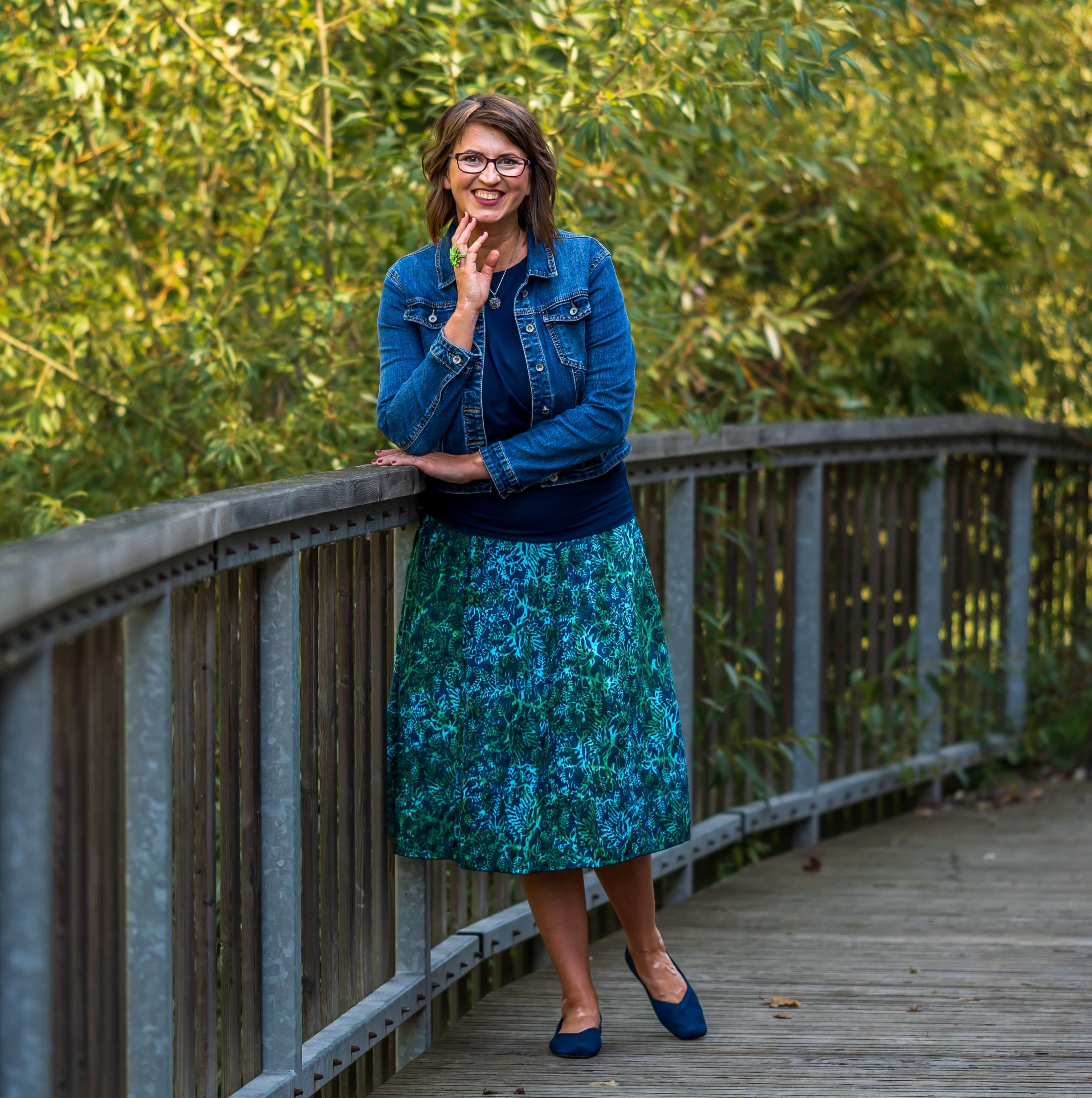 Barva sukně: petrolejová, zelená a ve vzoru světle modrá