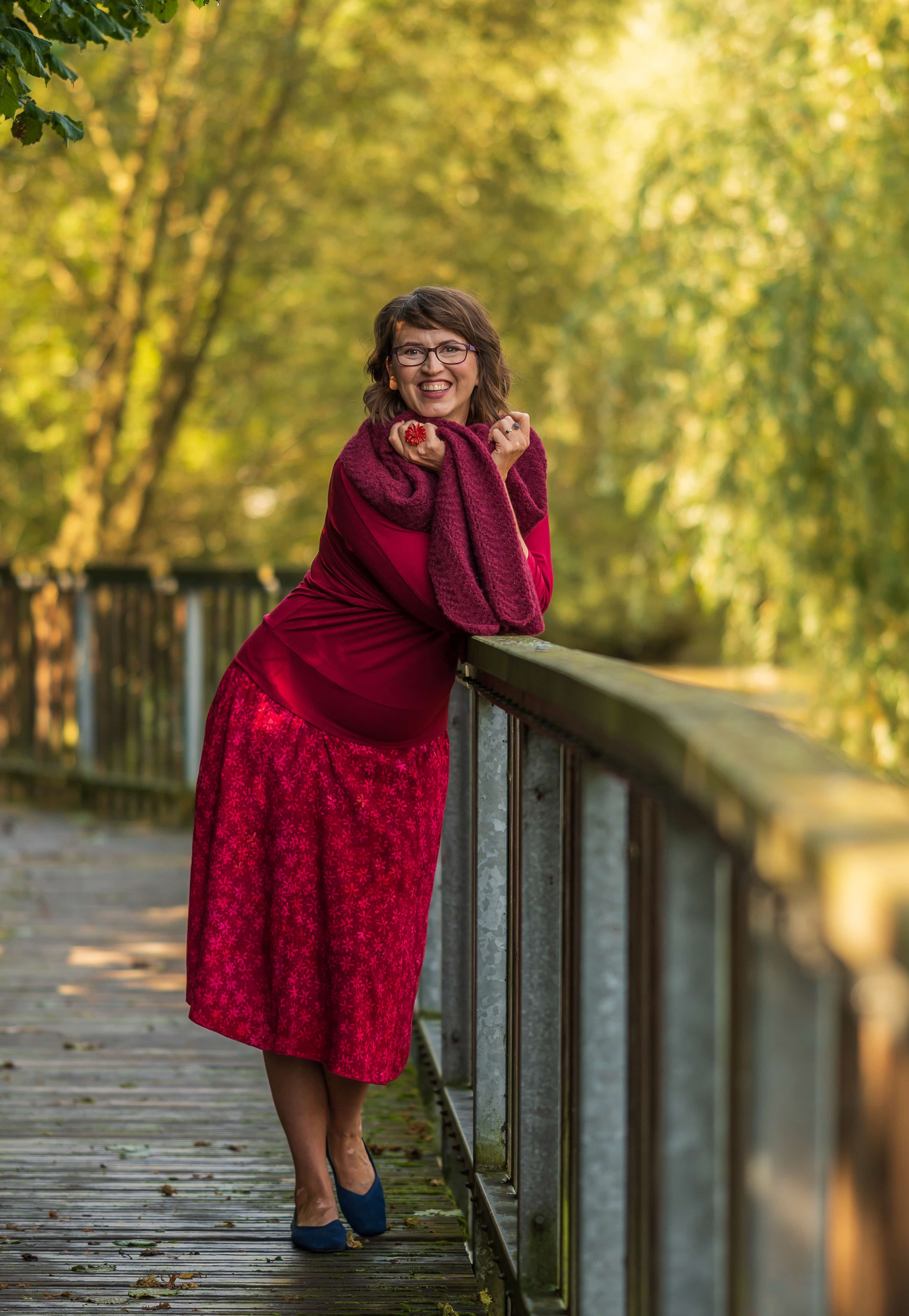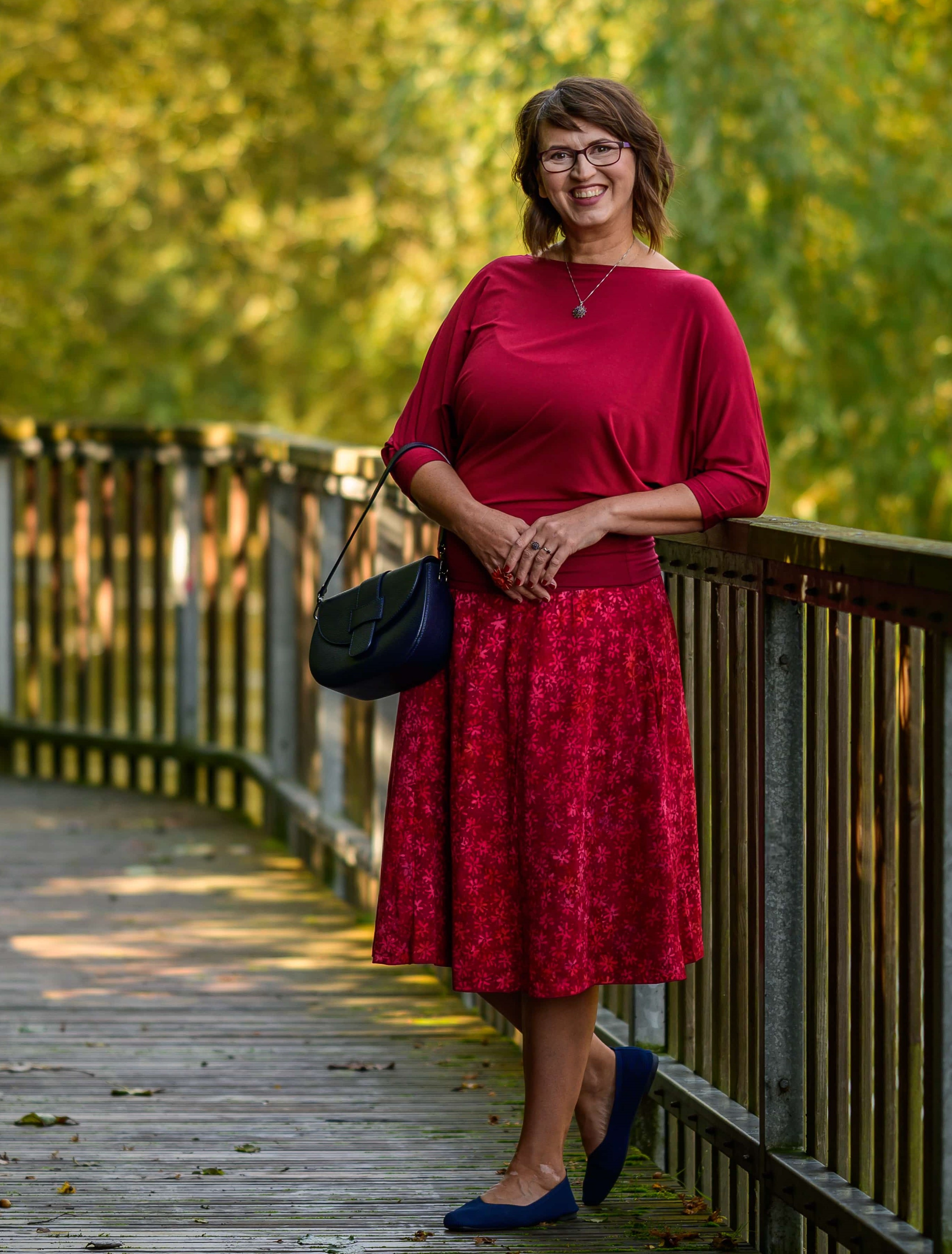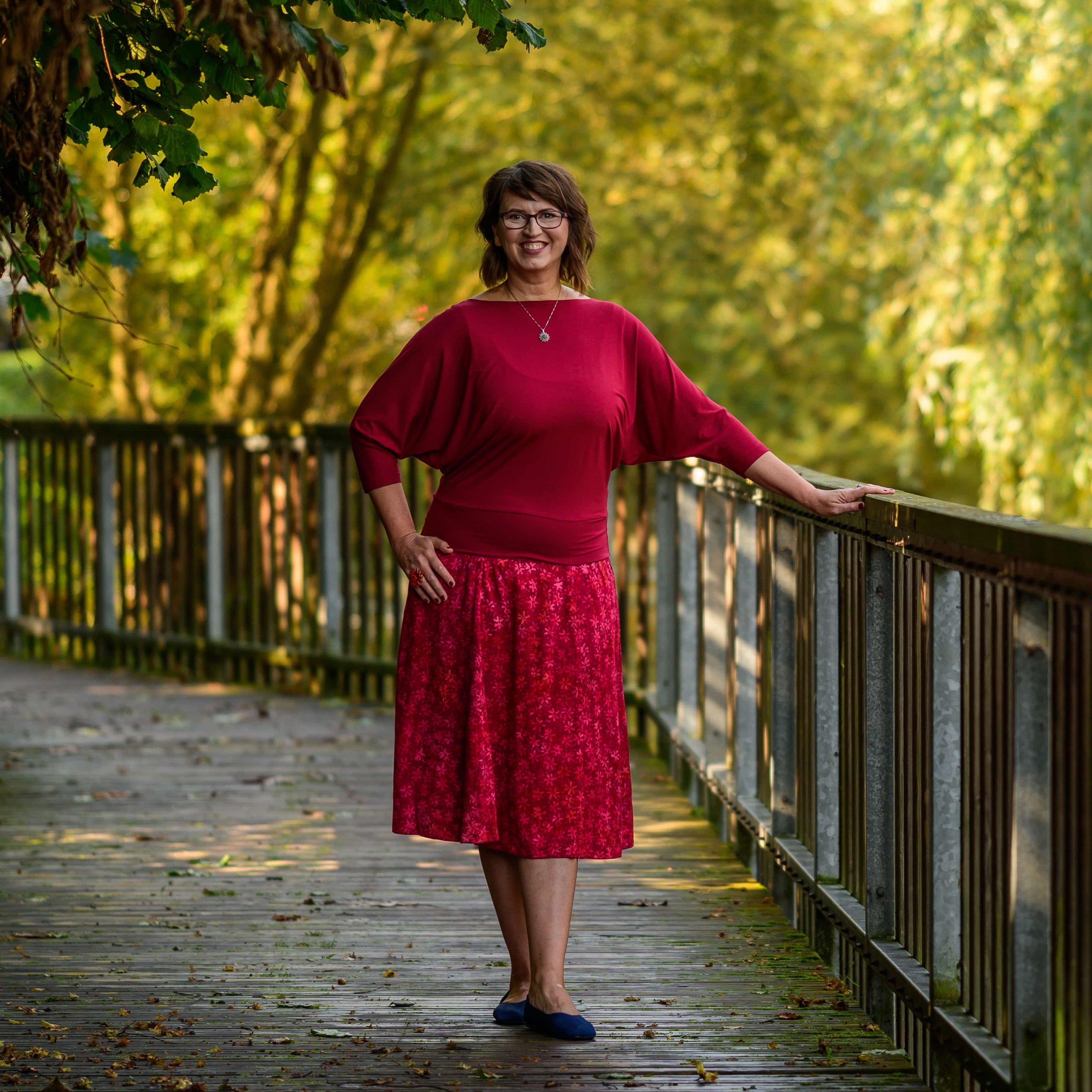 Barva sukně: vínově červená a ve vzoru světle červená, lososová