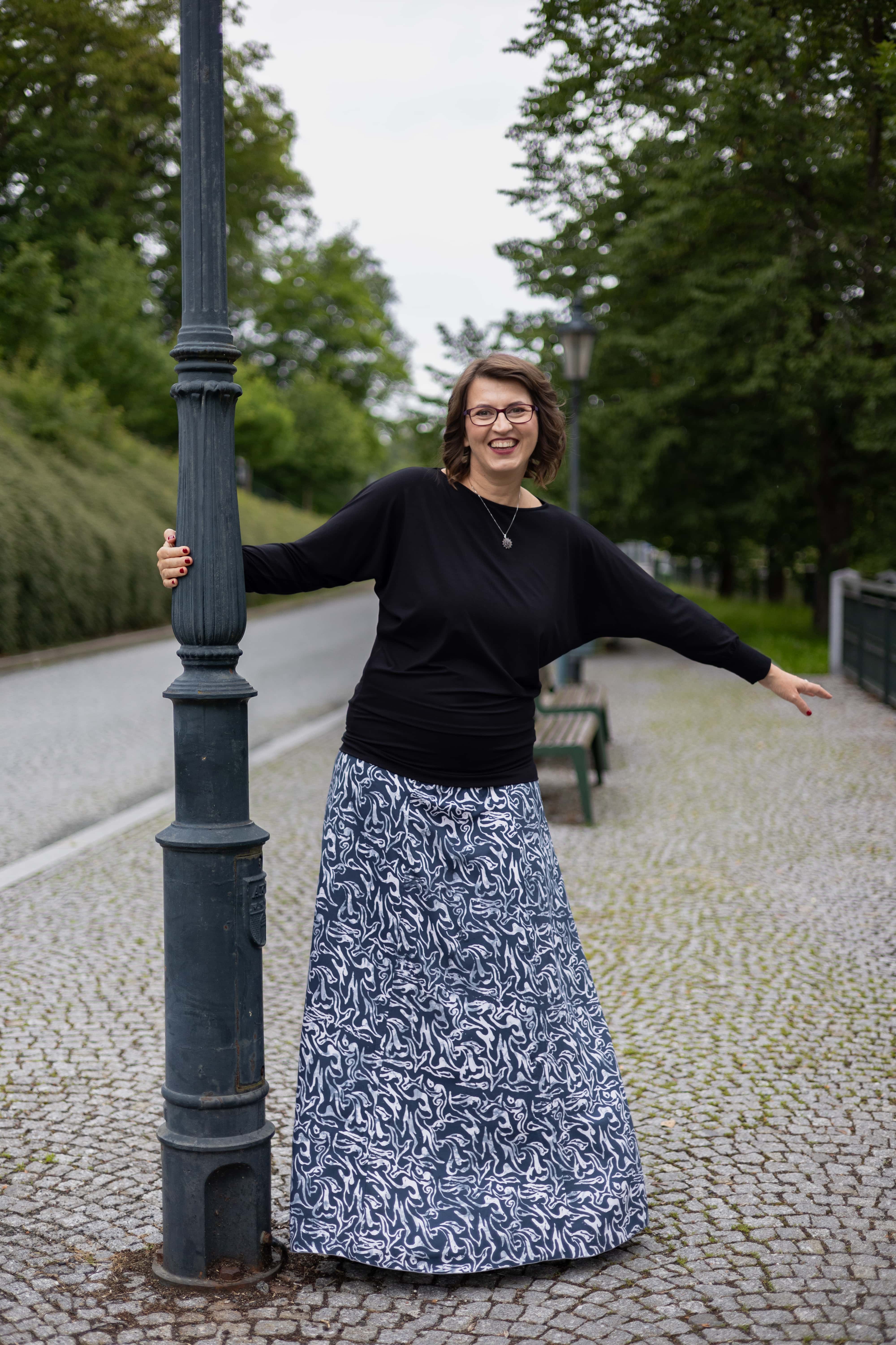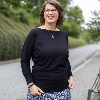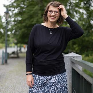 • Dlouhý netopýří rukáv a decentní lodičkový výstřih