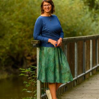 • Široký lem jemně obepíná boky – umožňuje nosit triko rovné nebo lehce podkasané