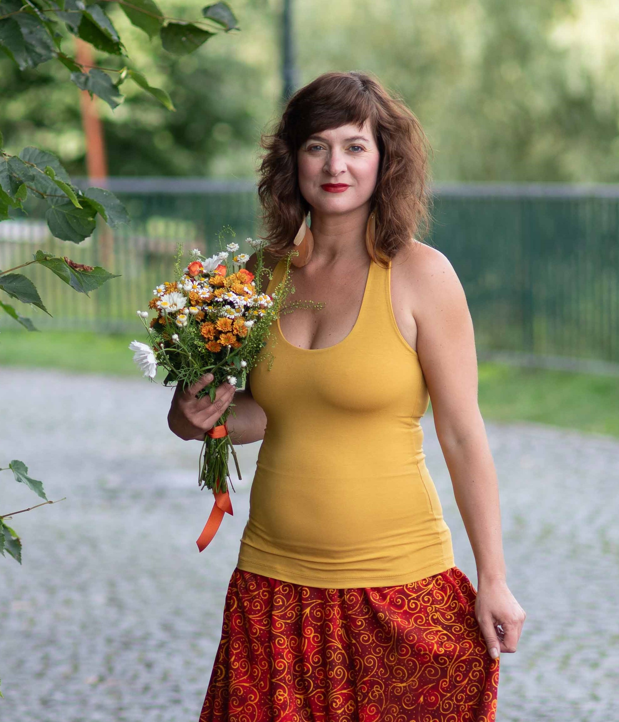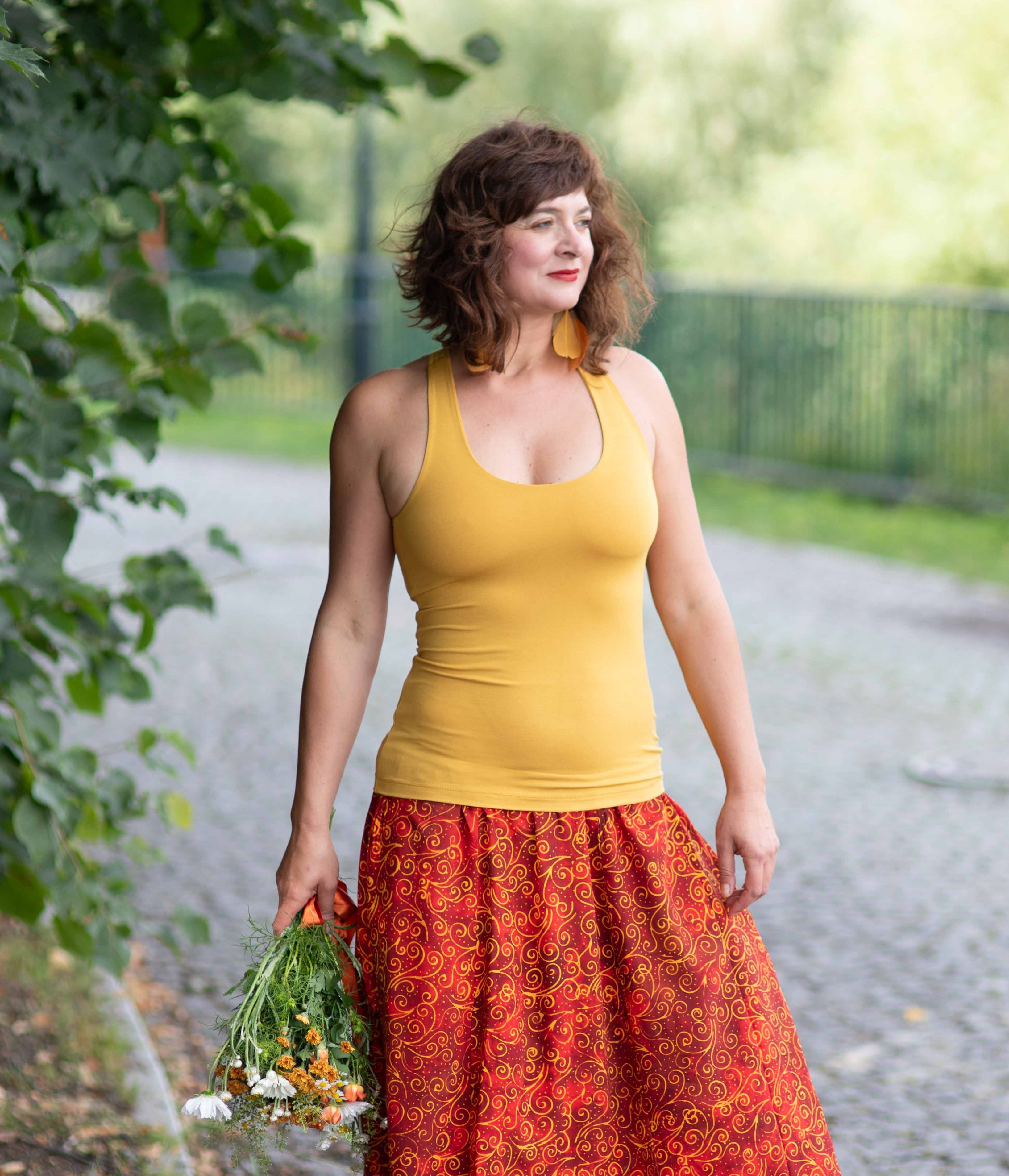 Tílko Lea je vyrobeno ze stejně příjemného materiálu jako naše braletky, legíny, trika, tílka a lemy u oblíbených dlouhých a krátkých sukní.