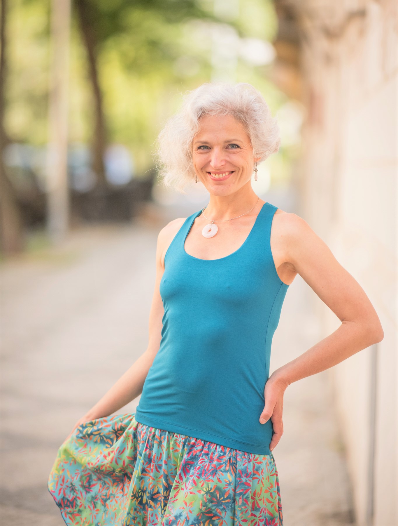 Tílko Lea je vyrobeno ze stejně příjemného materiálu jako naše braletky, legíny, trika, tílka a lemy u oblíbených dlouhých a krátkých sukní.