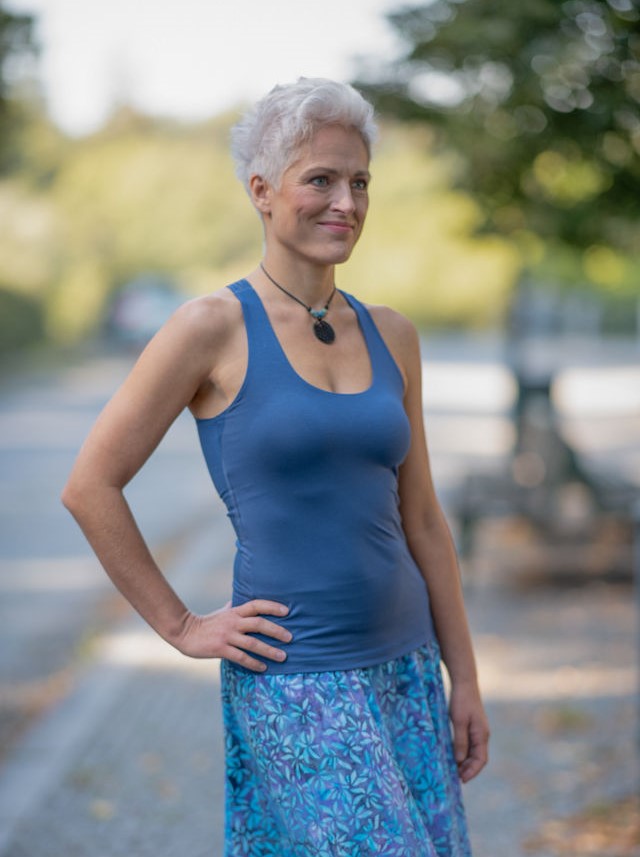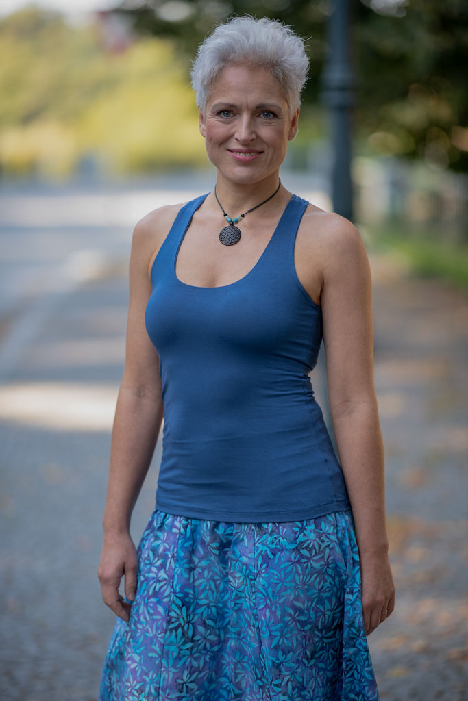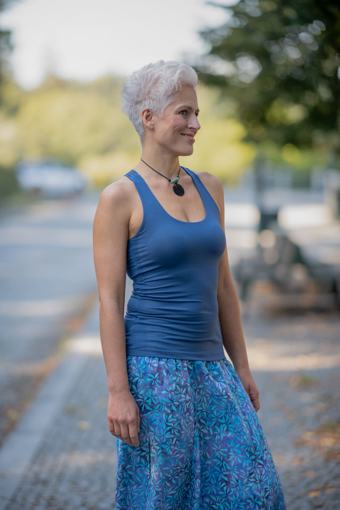 Tílko Lea je vyrobeno ze stejně příjemného materiálu jako naše braletky, legíny, trika, tílka a lemy u oblíbených dlouhých a krátkých sukní.