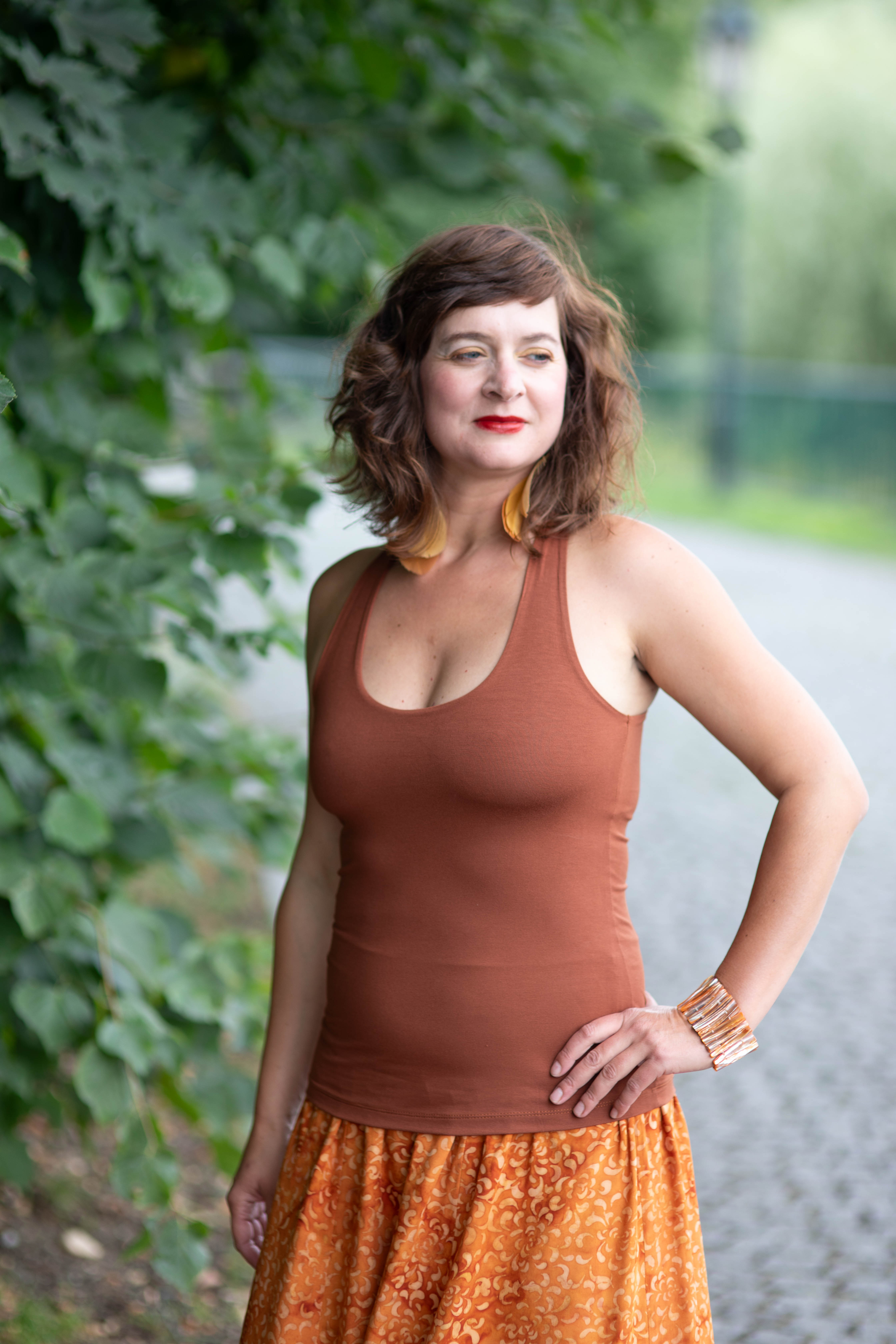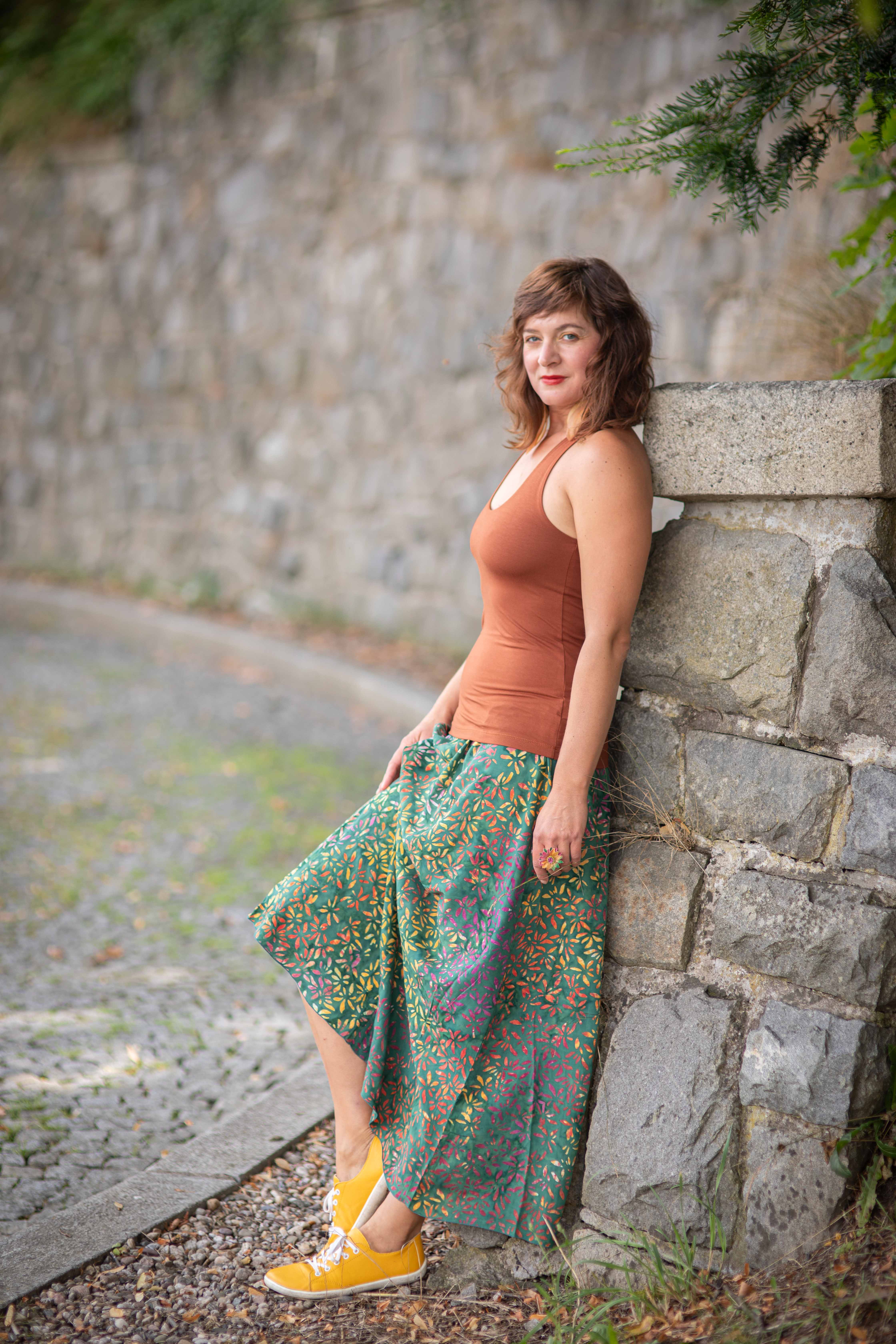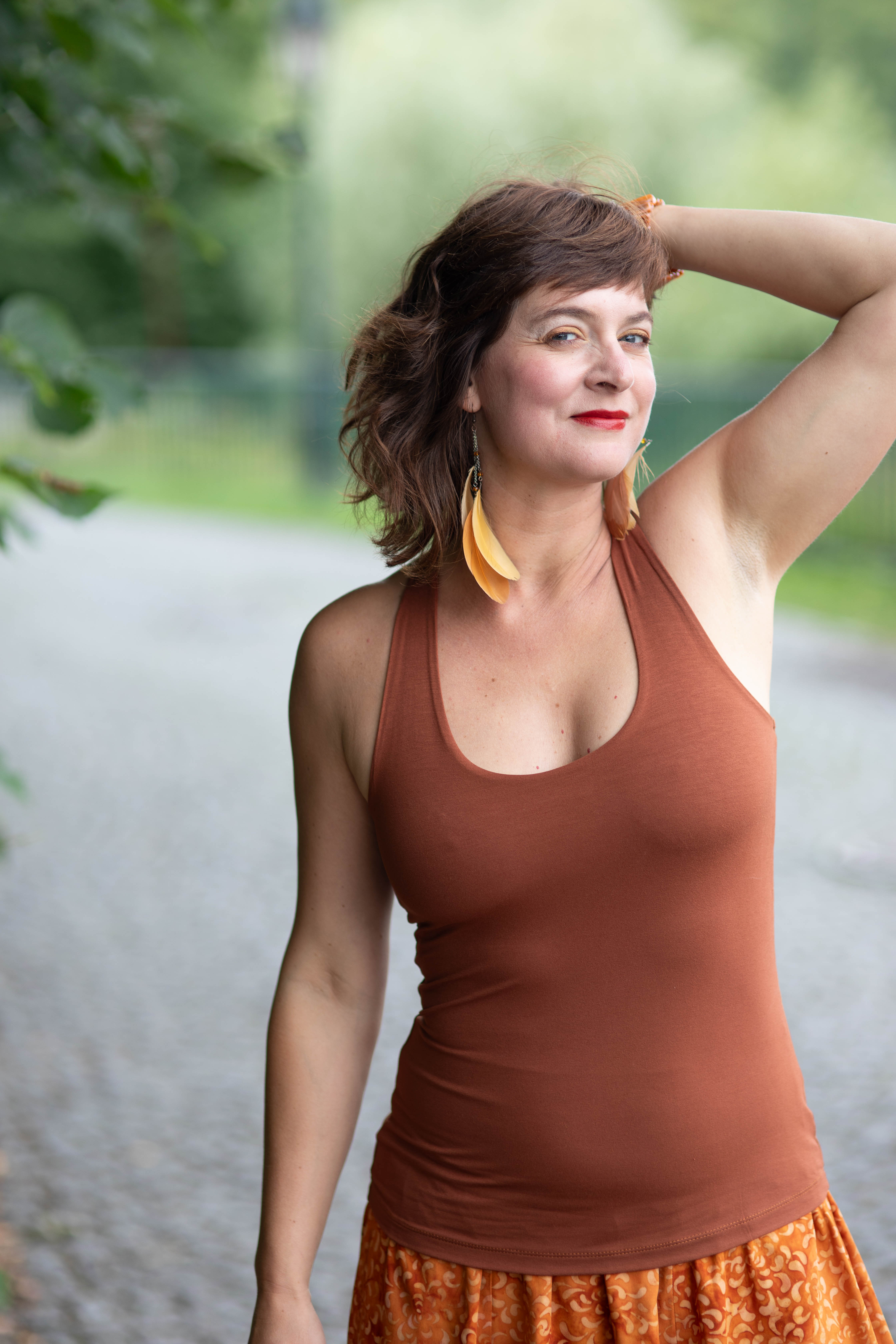 Tílko Lea je vyrobeno ze stejně příjemného materiálu jako naše braletky, legíny, trika, tílka a lemy u oblíbených dlouhých a krátkých sukní.