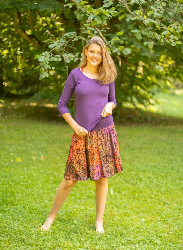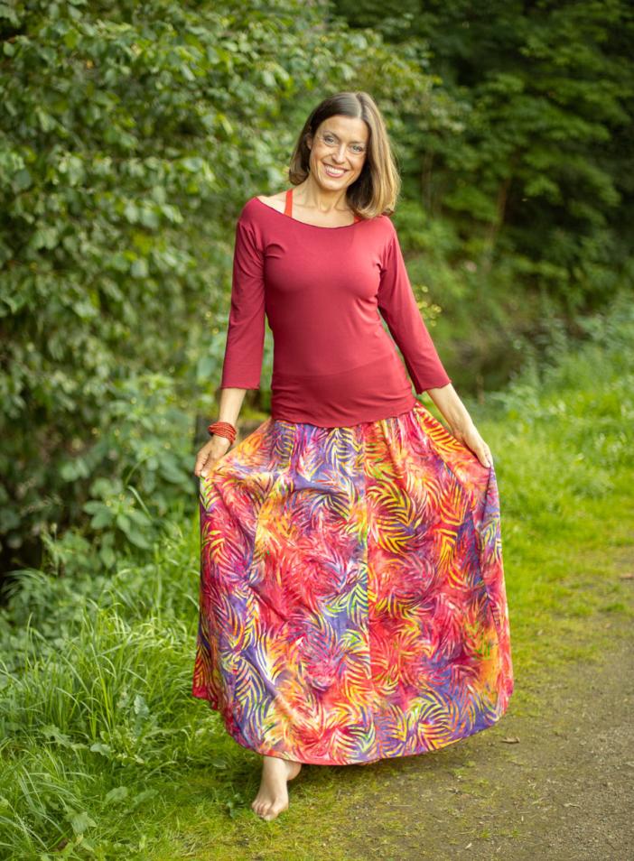 Tílko Bea s potiskem mandaly zlaté barvy je vyrobeno ze stejně příjemného materiálu jako naše braletky, legíny, trika, tílka a lemy u oblíbených dlouhých a krátkých sukní.